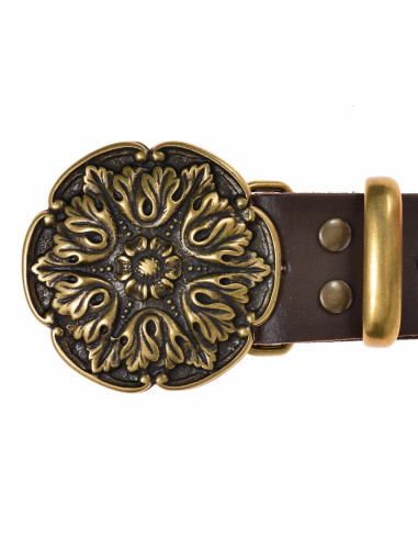 Autentisk floralt designet læderbælte lavet af vegetabilsk garvet læder