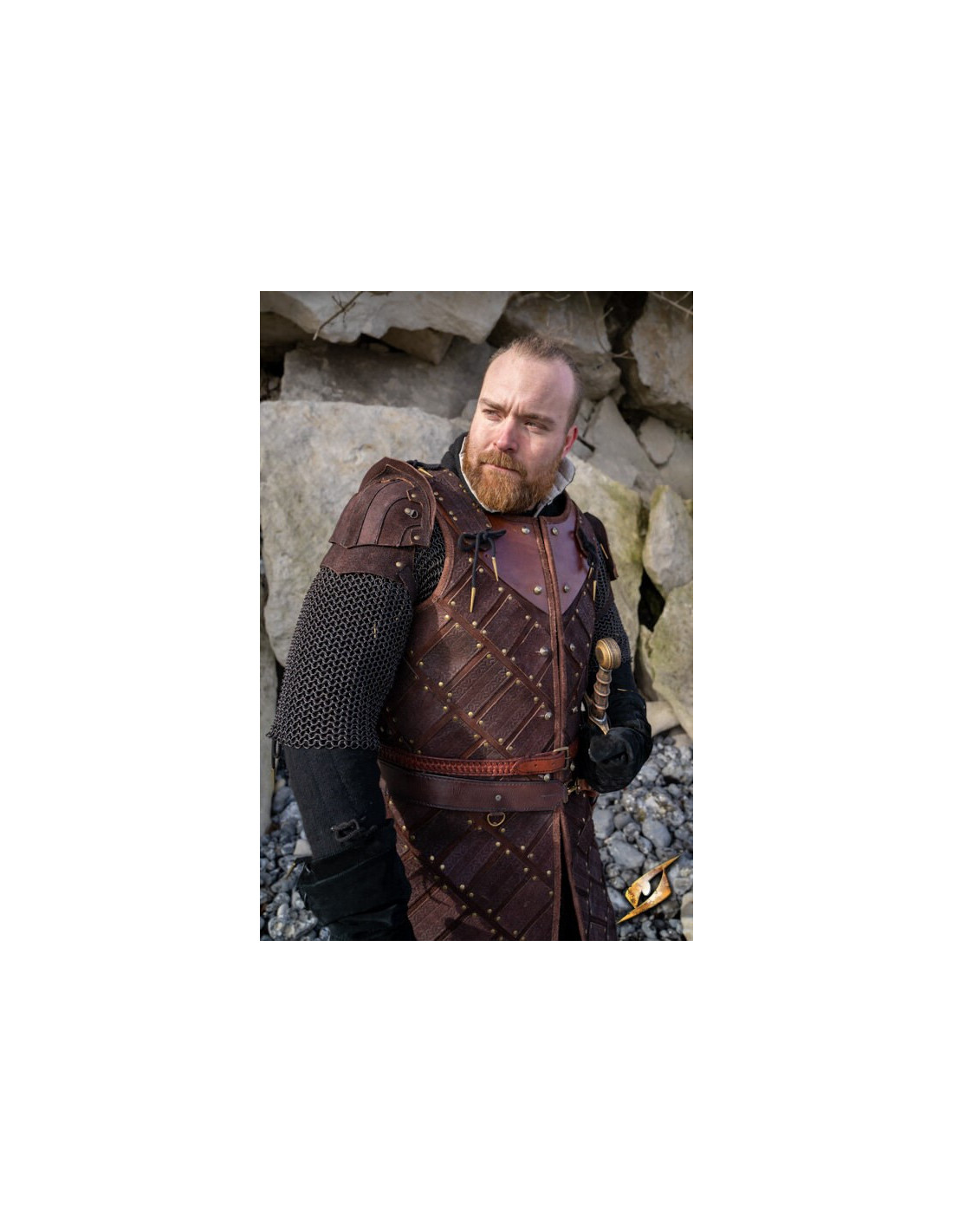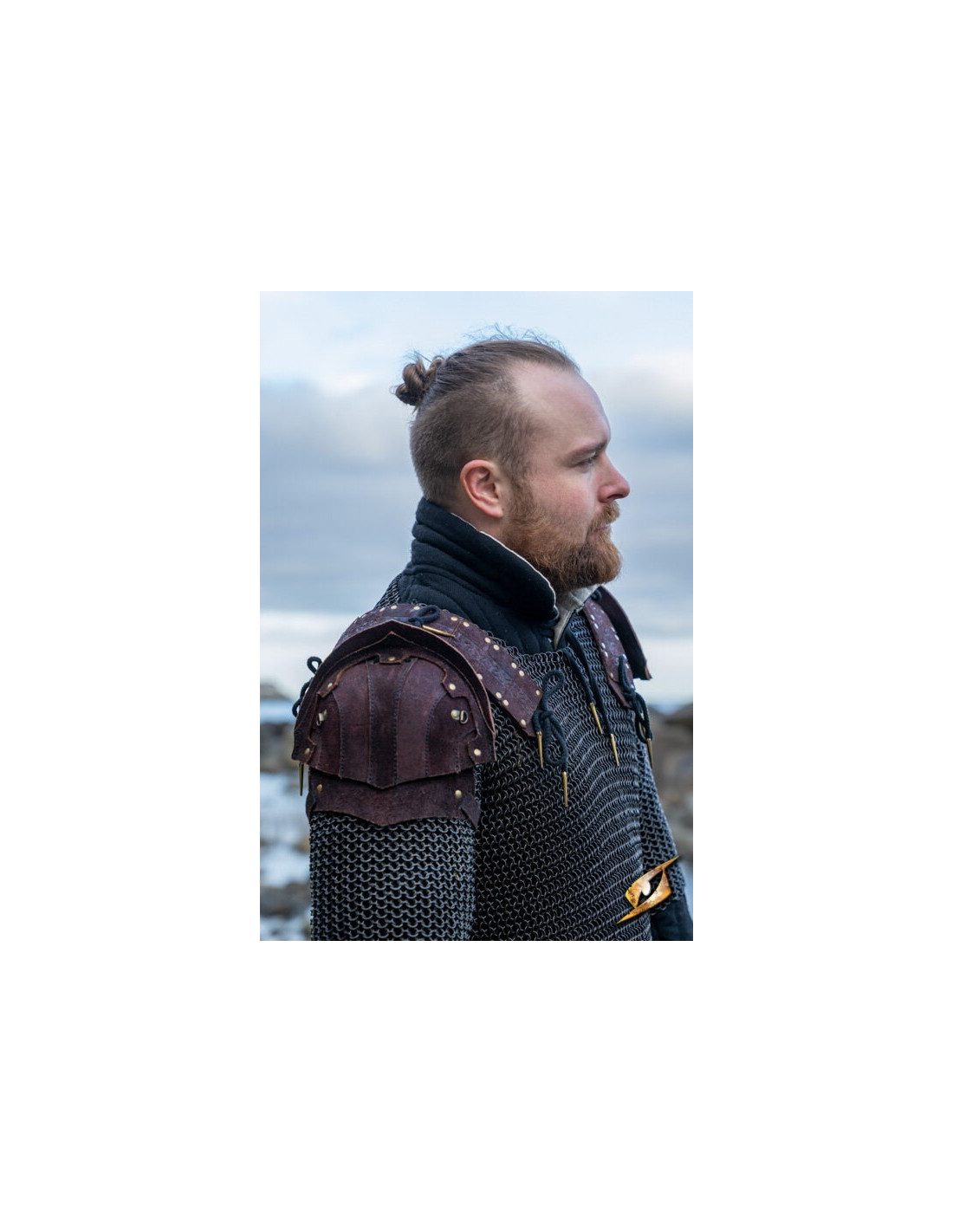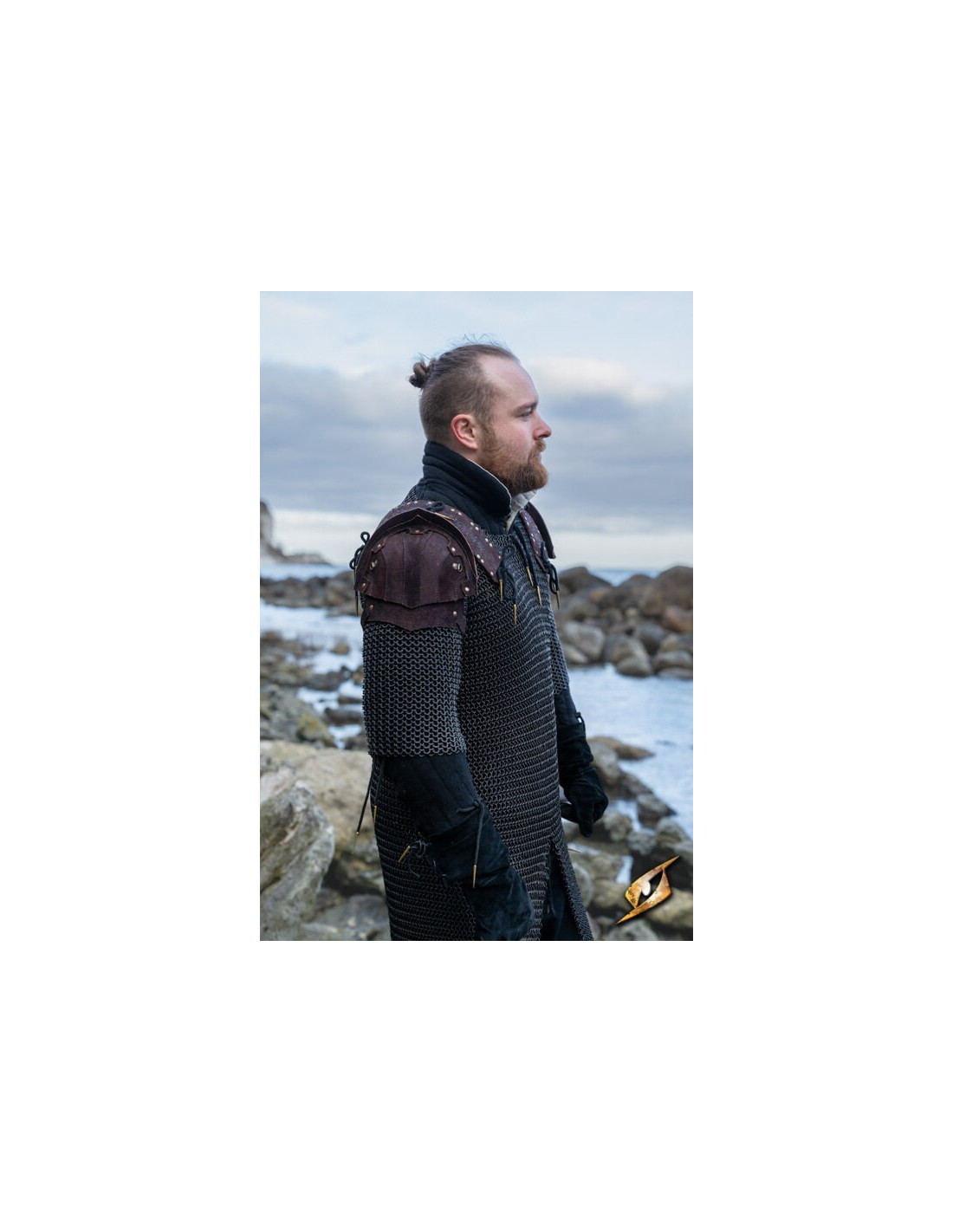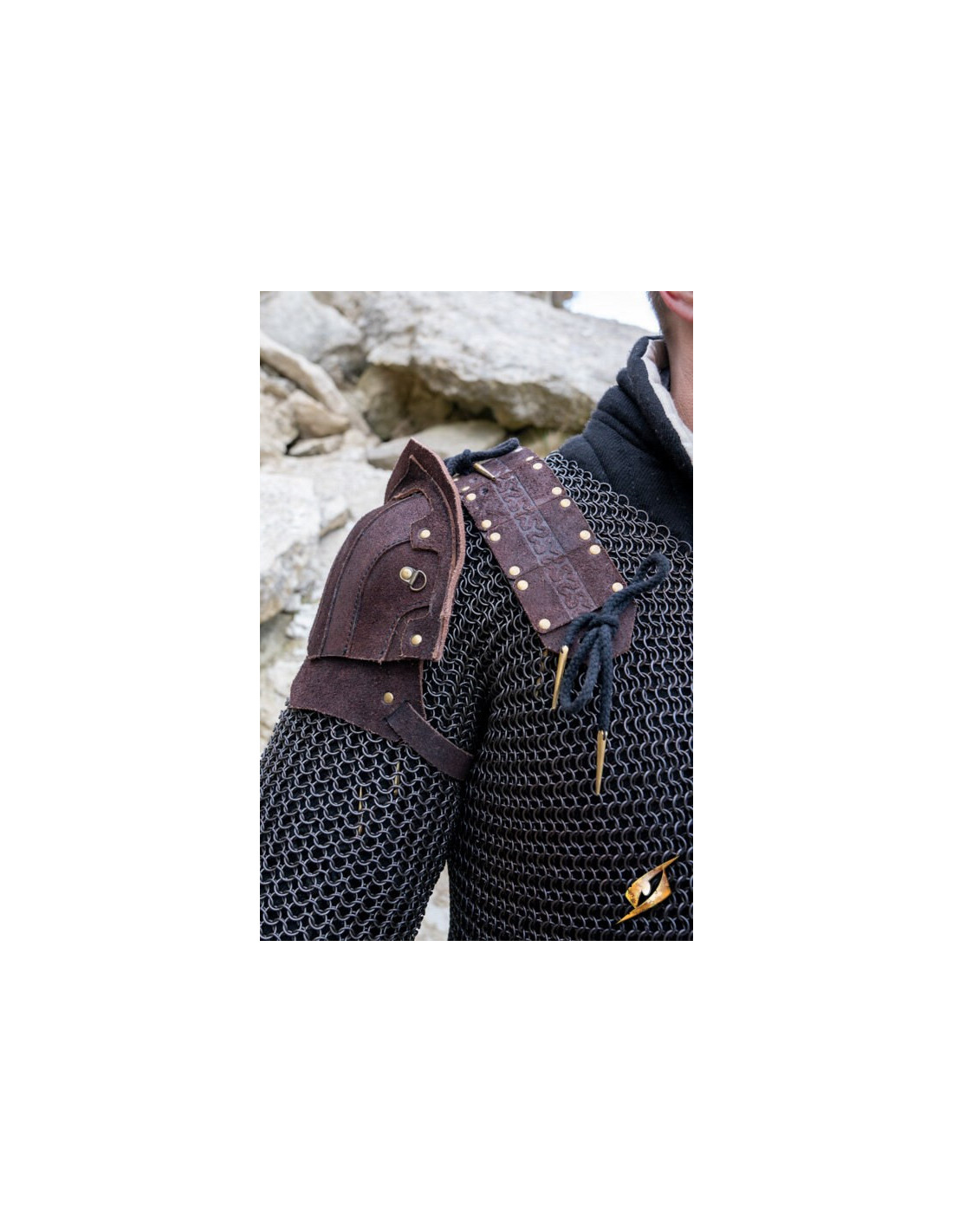 Læderremmen med nittede og segmenterede plader indgraveret med et smukt keltisk mønster giver mulighed for komfortabel justering af skulderafstanden, så den passer til skuldrene på næsten enhver kriger. Du behøver ikke at bekymre dig om at begrænse din bevægelse eller blive fanget i løse grene, da disse skulderpuder er designet til at give dig fuldstændig bevægelsesfrihed.