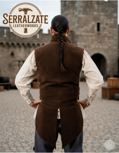 Medieval bælt i brunt læder med messingsmykker, gotisk stil