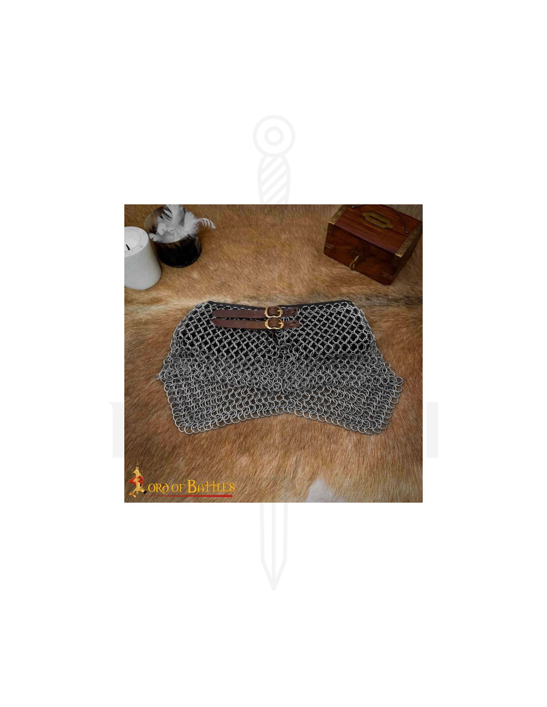 Perfekt både for dem, der ønsker at købe en medieval stål mesh gorget med læder som en funktionel del, samt for samlere, der søger et evocativt og praktisk element til deres udstilling.