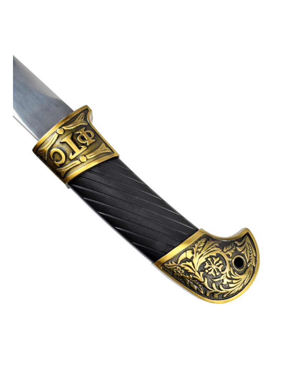 Opdag kosakker sværdet Shashka, en ægte juvel af historie og tradition. Dette imponerende sværd har et blad af høj kvalitet rustfrit stål, som er robust og holdbart. Dets håndtag i resin og metal giver en elegant finish, der tilføjer karakter og elegance til stykket.