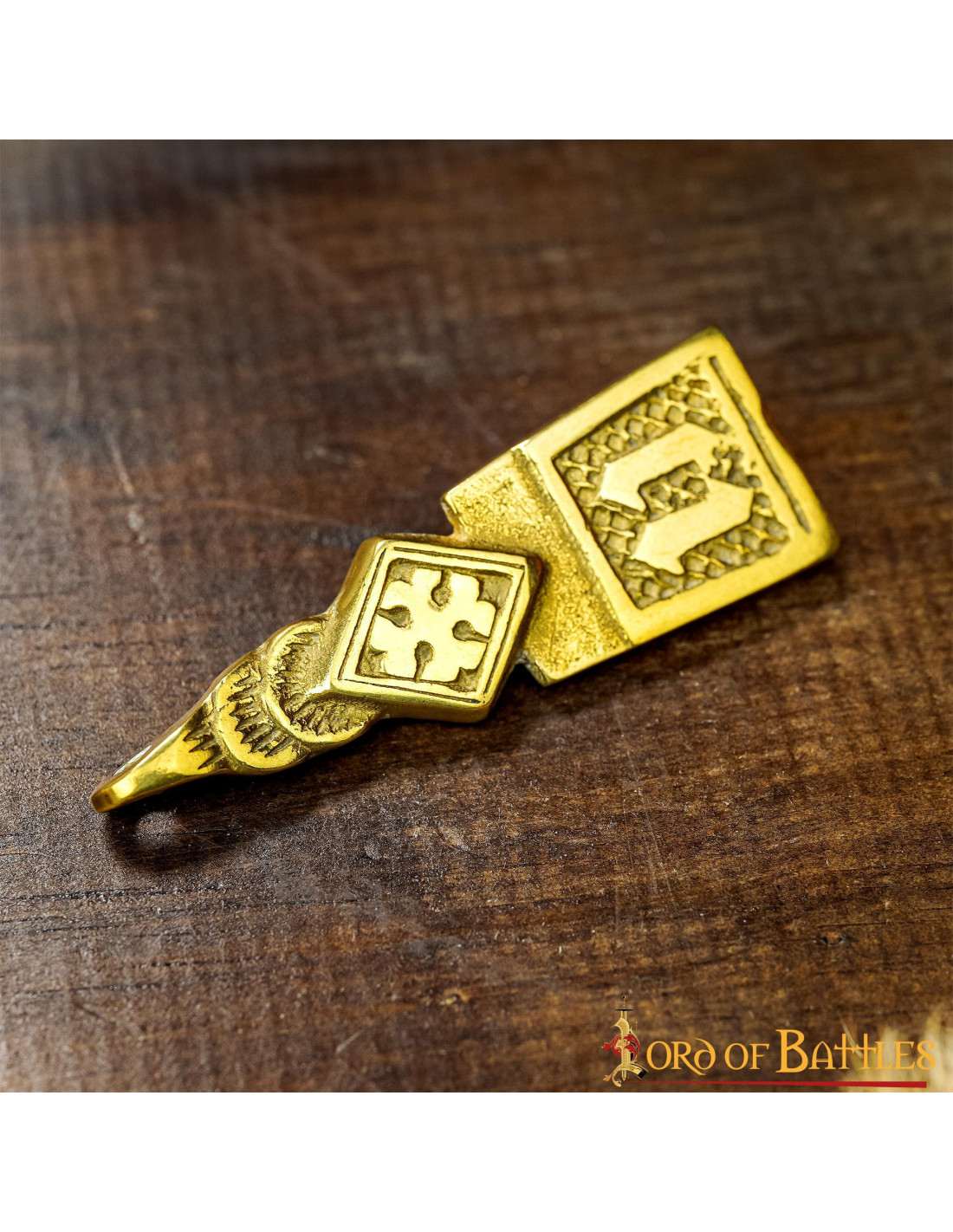 - Et strejf af historie på dit bælte: Dette tilbehør i messing er ikke bare et ornament, det er en erklæring om din påskønnelse af historisk ægthed. Hver omhyggeligt udformet detalje hylder middelalderlig elegance, hvilket giver dig chancen for at bære et stykke af fortidens storhed i dit moderne outfit.