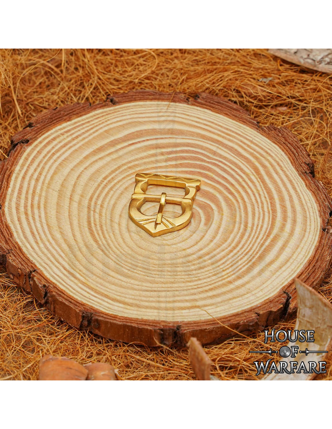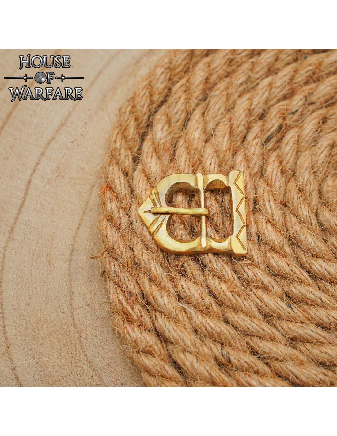 Inspireret af design fra vikingetidens og normannerens perioder fra det 9. til det 13. århundrede, har det en geometrisk zig-zag indgravering, der tilføjer autenticitet uden at være påtrængende, ideelt for dem, der søger troværdige rekreationer og detaljerede finish. Dens varme gyldne tone fremhæver læder og stoffer og giver det det slidte udseende, der adskiller et autentisk sæt fra resten.