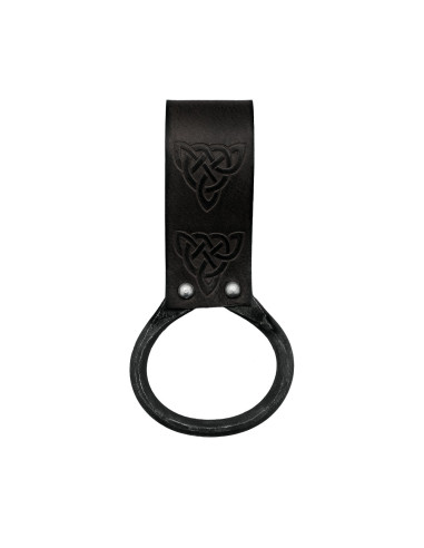 Oplev den elegante Tahalí til økser med keltiske knuder i sort farve, et unikt stykke, der kombinerer funktionalitet med et strejf af stil og distinktion.