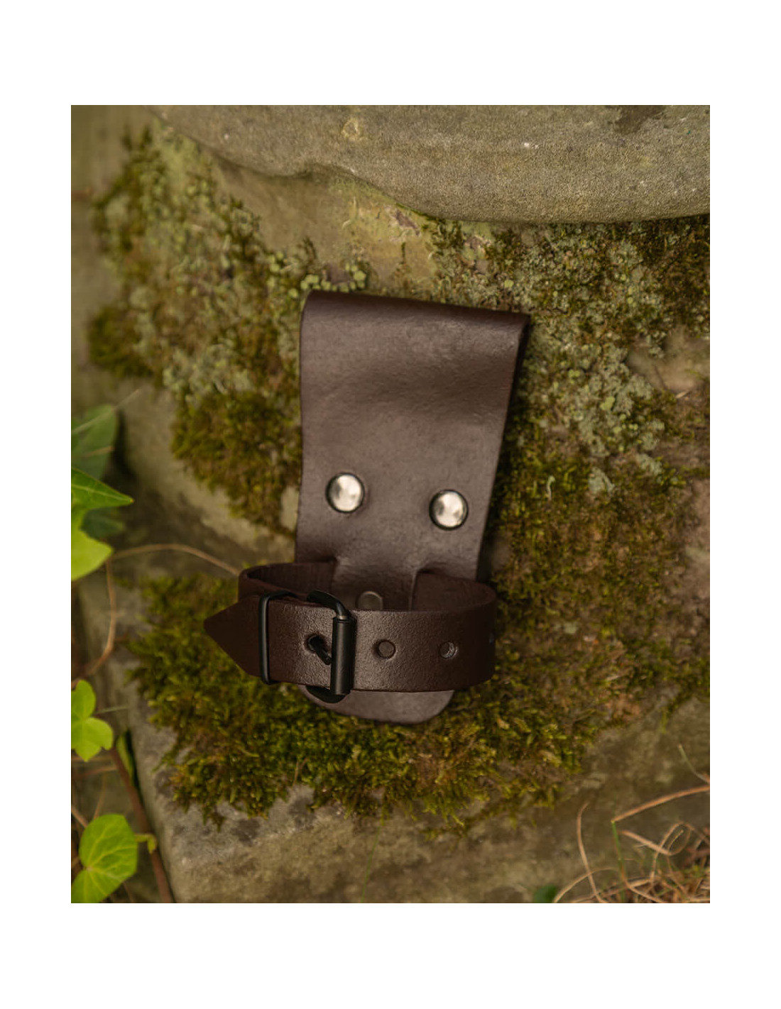- Autentisk vikingestil: Baldricens brune farve fremkalder vikingetidens autenticitet og tilføjer et stiliseret touch til dit outfit. Spændet sikrer, at dit horn eller våben forbliver sikkert på plads.