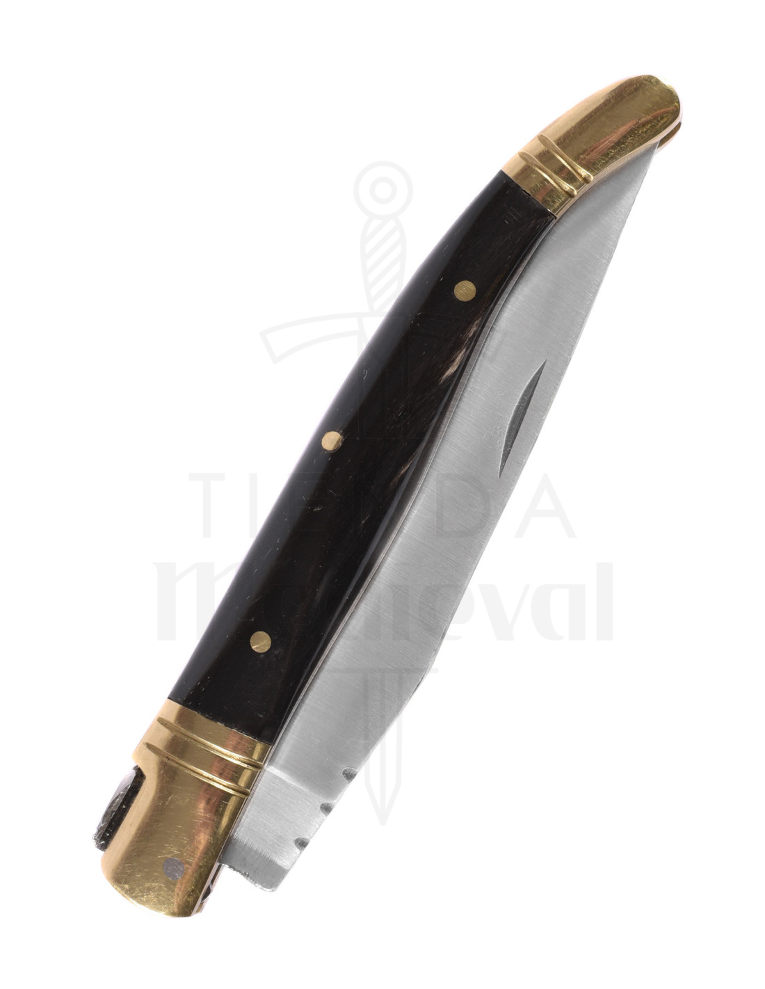 Fordyb dig i udsøgt arabisk håndværk med denne Laguiole-stil lommekniv, omhyggeligt håndlavet for at tilbyde dig det bedste inden for kvalitet og stil. Med et foldeblad smedet af 440 rustfrit stål og hornhåndtag er denne kniv et kunstværk, der forener elegance og funktionalitet perfekt.