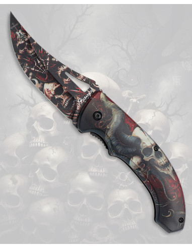 Hvis du vil købe Albainox kniv med udskåret 3D design af kranier, vil du finde i den et stykke, der ikke kun fungerer, men også har en kraftfuld og sammenhængende æstetik. Ideel for dem der søger et foldbart objekt med tilstedeværelse, sikkert greb og et design der skiller sig ud i enhver taske eller lomme, er denne kniv et køb designet til daglig brug og til dem der værdsætter visuelle detaljer i hver værktøj.
