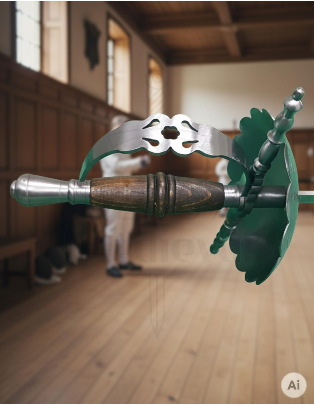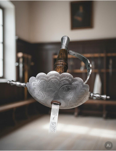 Oplev den rustikke spanske folie! Dette antikke hegnsværd er perfekt til elskere af historie og elegance. Fremstillet i Toledo, Spanien, skiller denne folie sig ud for sin kvalitet og autenticitet. Den rustikke spanske folie er lavet af hærdet og poleret stål, hvilket giver den styrke og holdbarhed. Dens flade klinge giver større fleksibilitet, hvilket...