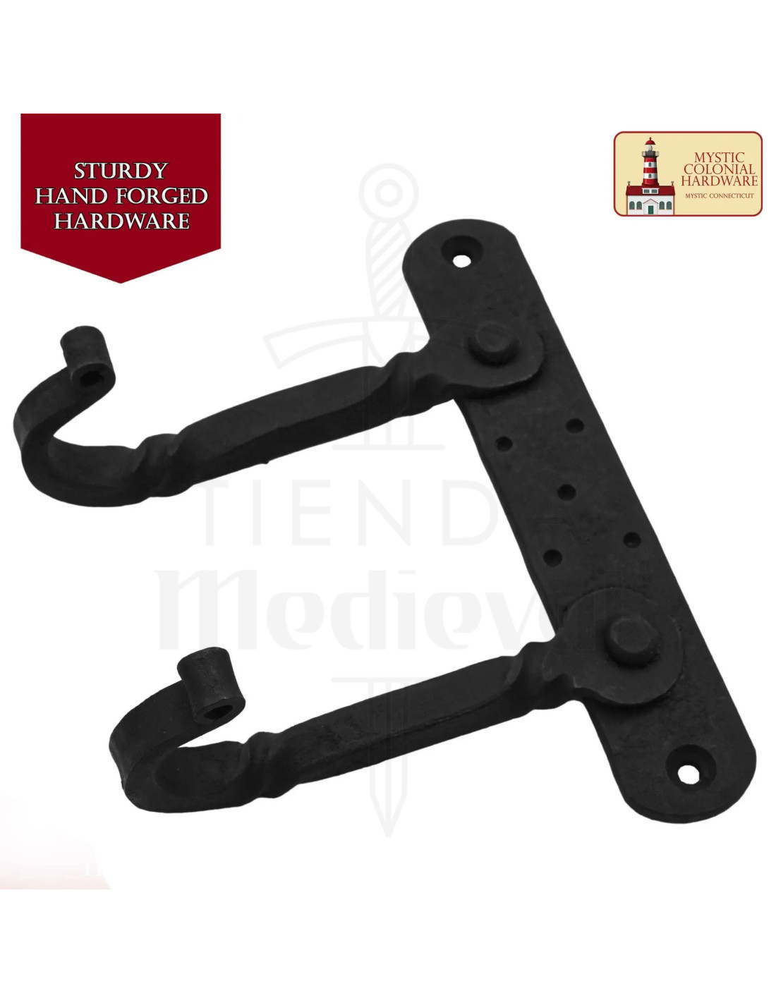 Håndsmiddet i massivt jern, udstråler dens tilstedeværelse soliditet og holdbarhed, mens den ældede sorte finish understreger det klassiske og middelalderlige udseende, der tilføjer karakter til indgange, køkkener eller badeværelser. Det hamrede stål og de snoede detaljer er ikke kun dekoration, men også træk, der sikrer stabilitet og en håndværksmæssig æstetik, der udvikler sig med brugen.