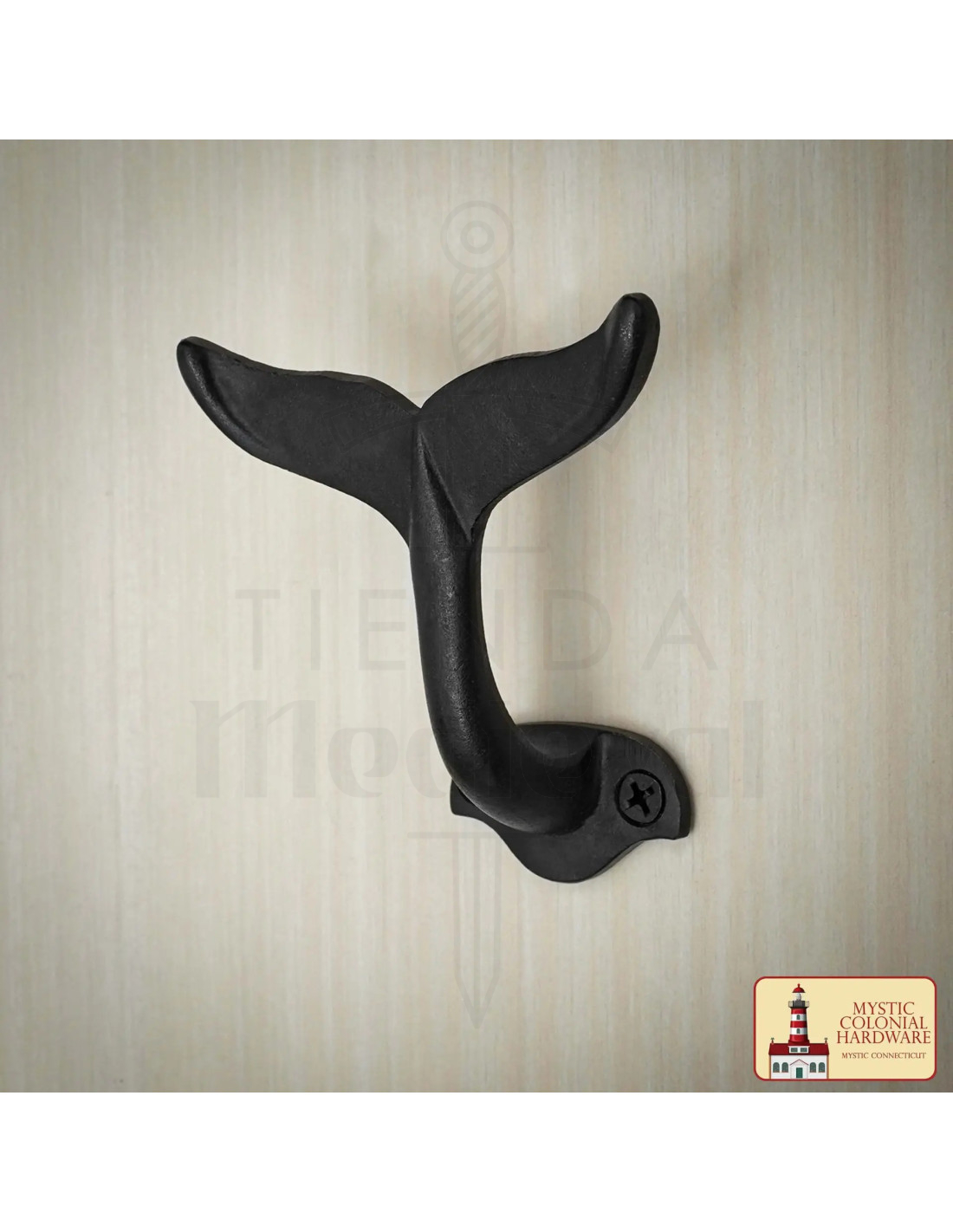 Knagen med hajefinne (8,6 x 8 cm.) tilføjer det maritime præg uden besvær, ved at kombinere æstetik og funktion: dens form inspireret af en hvalfins hale giver personlighed, mens dens solide konstruktion sikrer, at dine tøj, nøgler eller tasker altid er inden for rækkevidde og godt fastgjort.