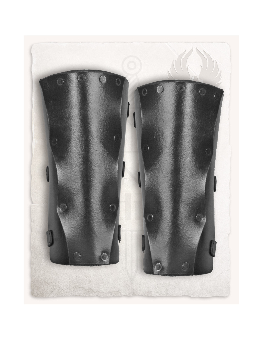 Fremstillet af højkvalitets delt læder, tilbyder de en blød og holdbar tekstur, der kombinerer holdbarhed og komfort ved hver brug. Deres buede design følger armens silhuet, hvilket letter bevægelse og forhindrer ubehag under lange dage eller rekreative kampe. Desuden, da de sælges i par, kan du skabe et harmonisk og komplet sæt. Den klassiske og robuste æstetik af disse armbånd gør dem ideelle til temafester, cosplay eller til at fremhæve dit middelalderlook med et strejf af autoritet og karakter.
