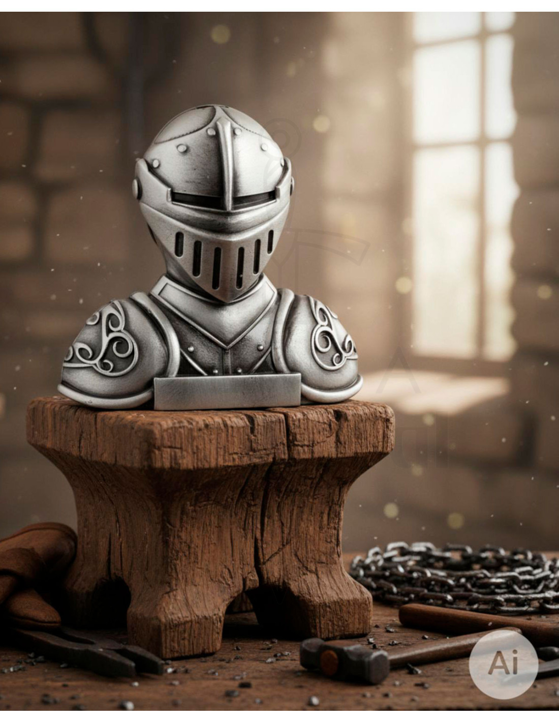 Sættet inkluderer også en stander i form af en ridderhjelm, designet med en blank sølvfinish og relieffede detaljer, der fremkalder en ridderrustning. Denne stander giver ikke blot organisation og bekvemmelighed, men tilføjer også et dekorativt præg med personlighed til dit skrivebord eller din hylde. Den solide base sikrer stabilitet og holdbarhed i daglig brug. Med den garanterede kvalitet fra Tole10 Imperial er dette sæt ideelt for både historie- og middelalderkulturentusiaster og for dem, der ønsker et funktionelt objekt med unikt design.