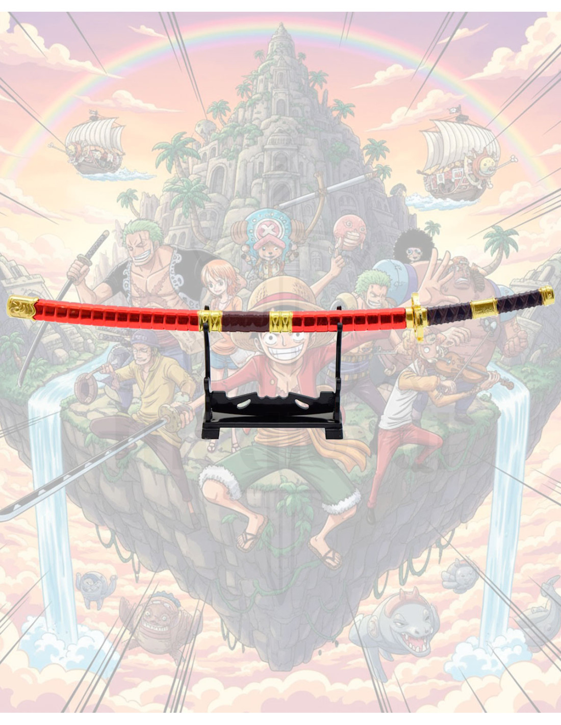 Dette ornamentale replika henviser direkte til Zoro-universet, en ikonisk karakter fra One Piece, hvis kampstil og sværd har præget generationer af fans. For dem, der leder efter et repræsentativt og kompakt stykke, ideelt til at vise passionen for serien, er det en differentierende mulighed.