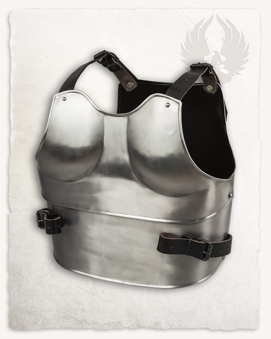 - Anbefaling til brug med en gambeson eller polstret krave: Det anbefales at bruge en gambeson jakke eller en polstret krave under brystpladen og ryglænet for at øge komforten, når du har den på, og for at undgå blå mærker og skrammer.