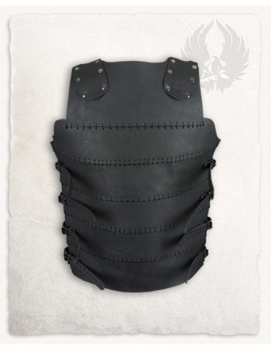 Bliv helten i din egen saga med vores klassiske firepladede Fantasy Cuirass i sort stål! Smedet med de fineste håndværkeres præcision er denne kuras meget mere end rustning: det er din billet til fantasiens verden, der er blevet til virkelighed!