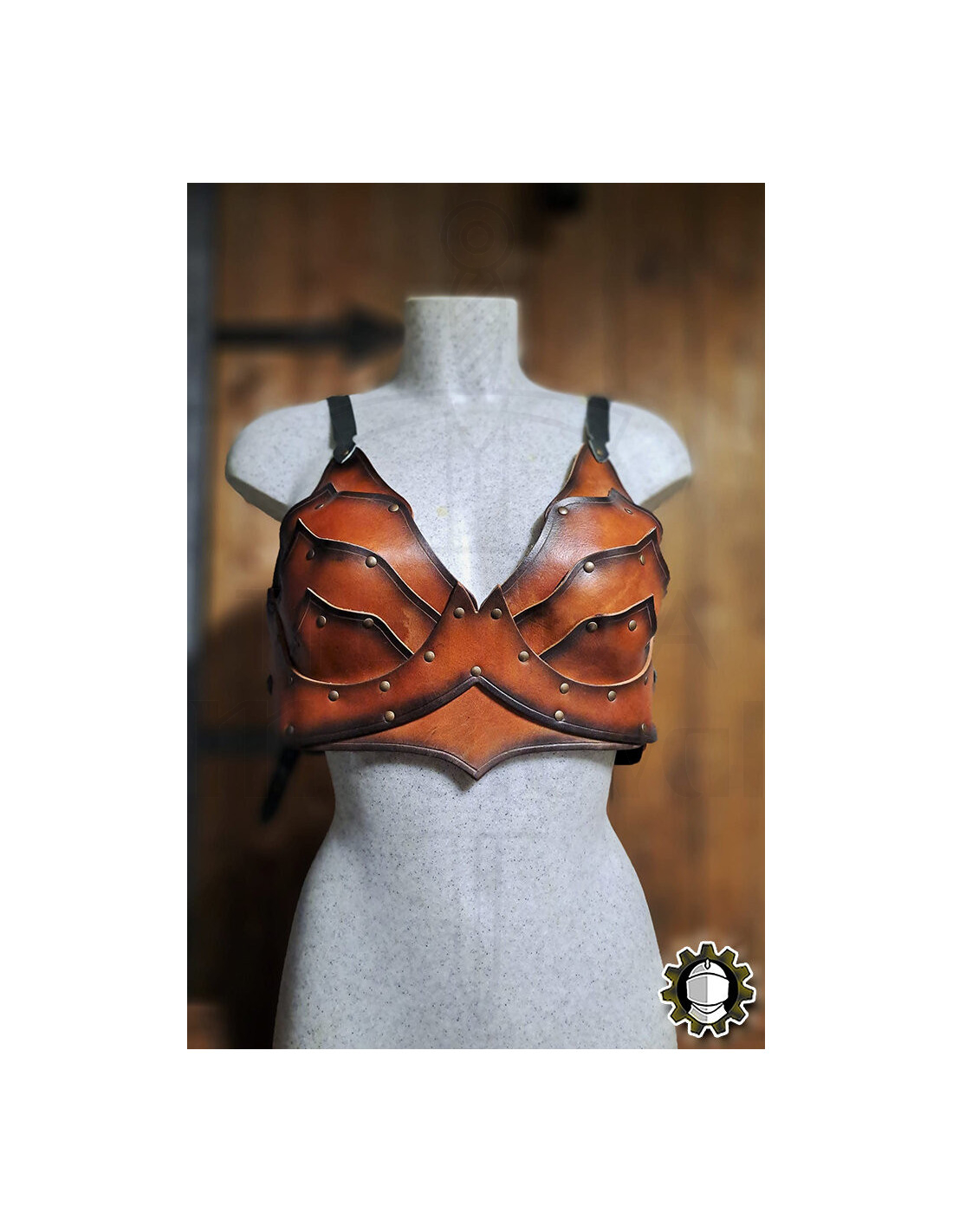 Håndlavet af 100 % kvalitets italiensk læder fremhæver dette korsæt skønheden og autenticiteten fra middelalderen og giver et strejf af rustikhed og sofistikering til enhver påklædning. Dens dybe brune farve vækker ikke kun varme minder om en eftermiddag på et slot, men giver også en ekstraordinær alsidighed til at kombinere med forskellige beklædningsgenstande, fra eteriske kjoler til mere udsøgte dragter.
