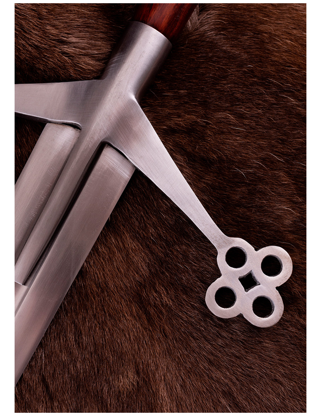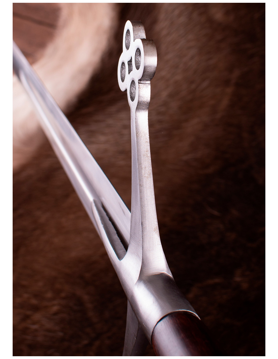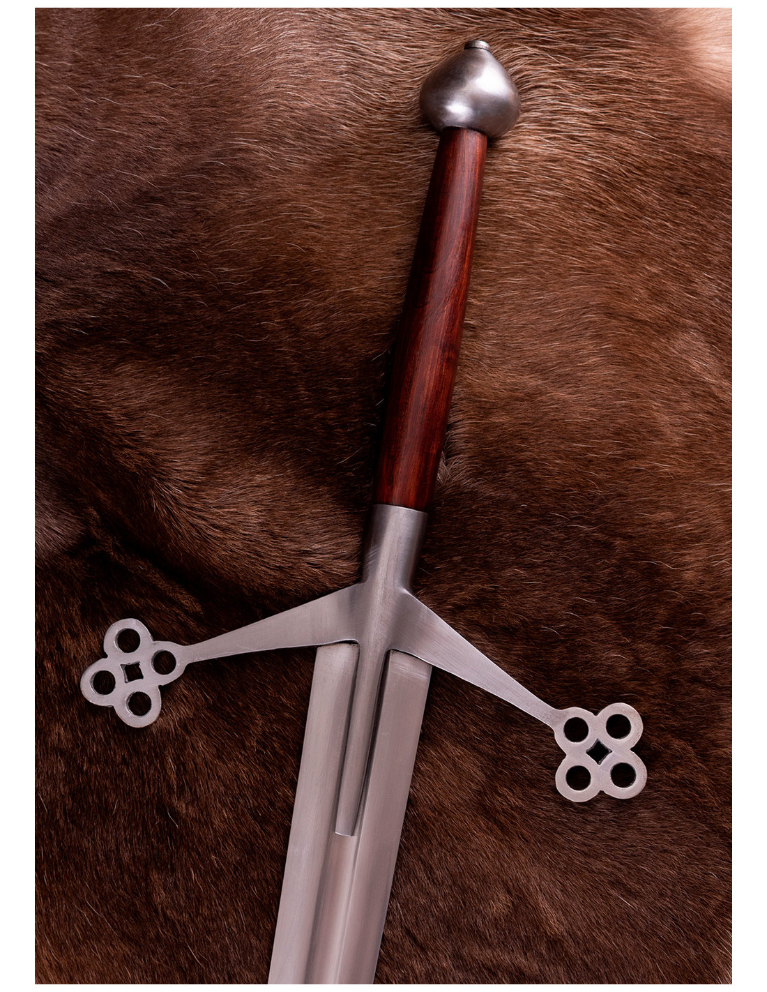 Dyk ned i skotsk historie med denne fantastiske replik af en skotsk Claymore to-håndssværd fra det 16. århundrede. Inspireret af originale eksemplarer, der udstilles på prestigefyldte museer som National Museum of Scotland i Edinburgh og British Museum i London, tilbyder dette sværd et klassisk design og enestående historisk autenticitet. Det er et uundværligt stykke for enhver samler eller elsker af skotsk kultur.
