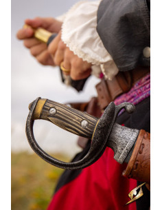 Piratpistoler var flintlåsvåben , hvis begrænsning var tydelig, da de afhang af et enkelt skud. En manuel genopladning var påkrævet efter hvert skud, og dets effektivitet afhang af, at våbnet ikke var blevet vådt. Af denne grund var det almindeligt at se pirater med flere pistoler i livet , endda op til fem. Som et supplement brugte piraten dolke og sværd i nærhedsangreb og hånd-til-hånd-kampe.