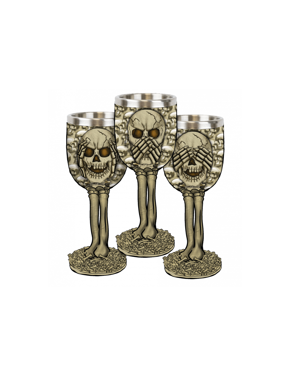 Leder du efter en unik og slående kop til dine møder eller fester, så har vi det, du har brug for! Vi præsenterer vores kop med 3 kranier, der er fremstillet af harpiks og aluminium, som vil tilføje et strejf af originalitet og sjov til enhver lejlighed.