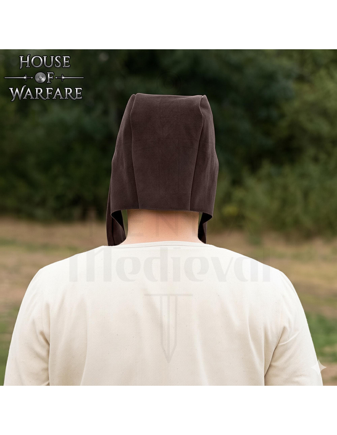 Hvis du vil købe den middelalderlige karpersk hat i mørkebrun suede, vil du her finde et stykke, der er tro mod traditionen, behageligt at bære hele dagen og designet til at holde.