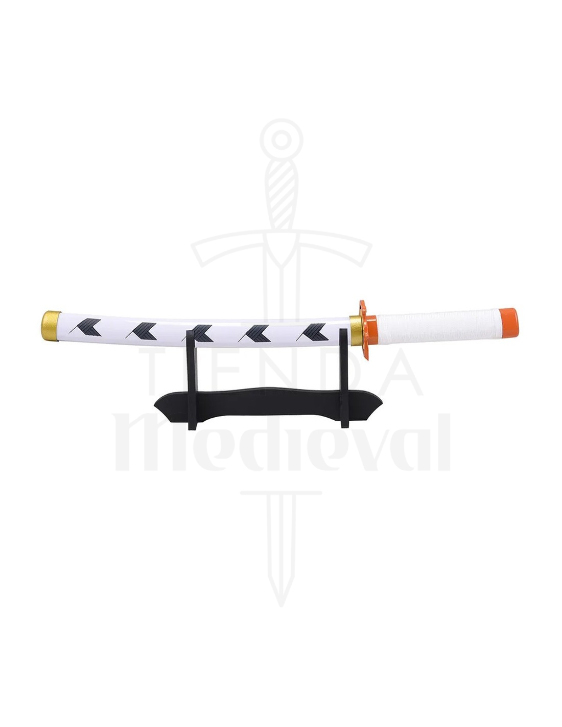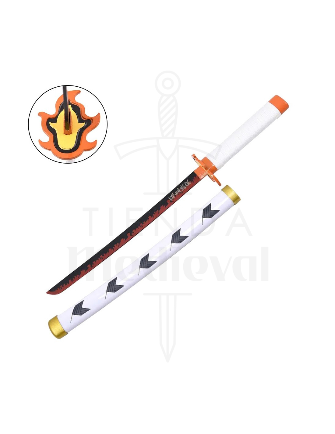 Forestil dig at have et stykke i dine hænder, der ikke kun er et dekorativt objekt, men også en hyldest til mod og kampånd. Mini Katana Rengoku Kyojuro, inspireret af den berømte karakter fra serien 'Kimetsu no Yaiba' (Demon Slayer), er meget mere end en simpel ornamentalkatana; det er en repræsentation af ilden, der brænder i krigerens hjerte.