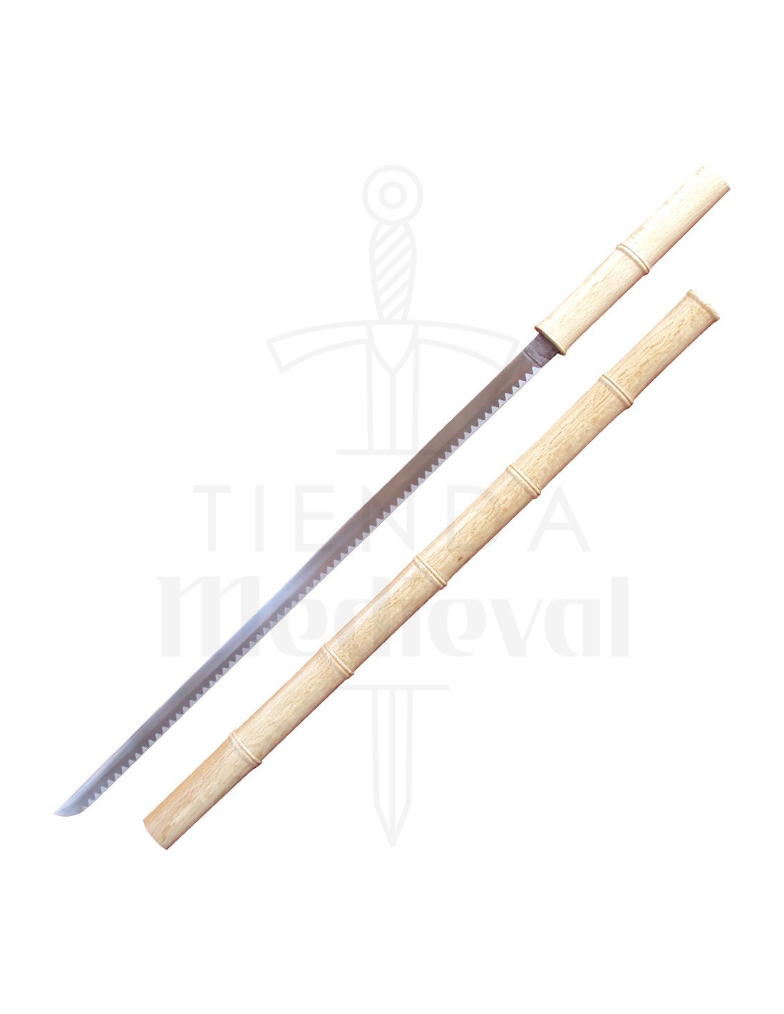Er du på udkig efter et eksotisk og elegant præg til at dekorere dit rum? Denne dekorative katana model med bambusskaft er perfekt til at tilføje en karakteristisk stil til ethvert hjørne. Det ikke-skarpe, blanke stålhåndtag kombinerer med et håndtag, der simulerer teksturen og knuderne på bambus, hvilket skaber en naturlig og sofistikeret visuel effekt.