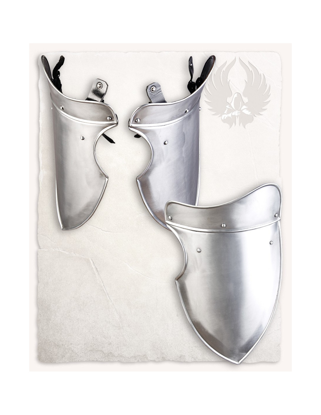 Galhad Medieval-skulpturerne i poleret stål forbedrer ikke kun din beskyttelse, men giver dig også mulighed for at udtrykke din identitet på slagmarken. Tilføj dette personlige præg til din rustning og forbered dig på herlighed i kamp!