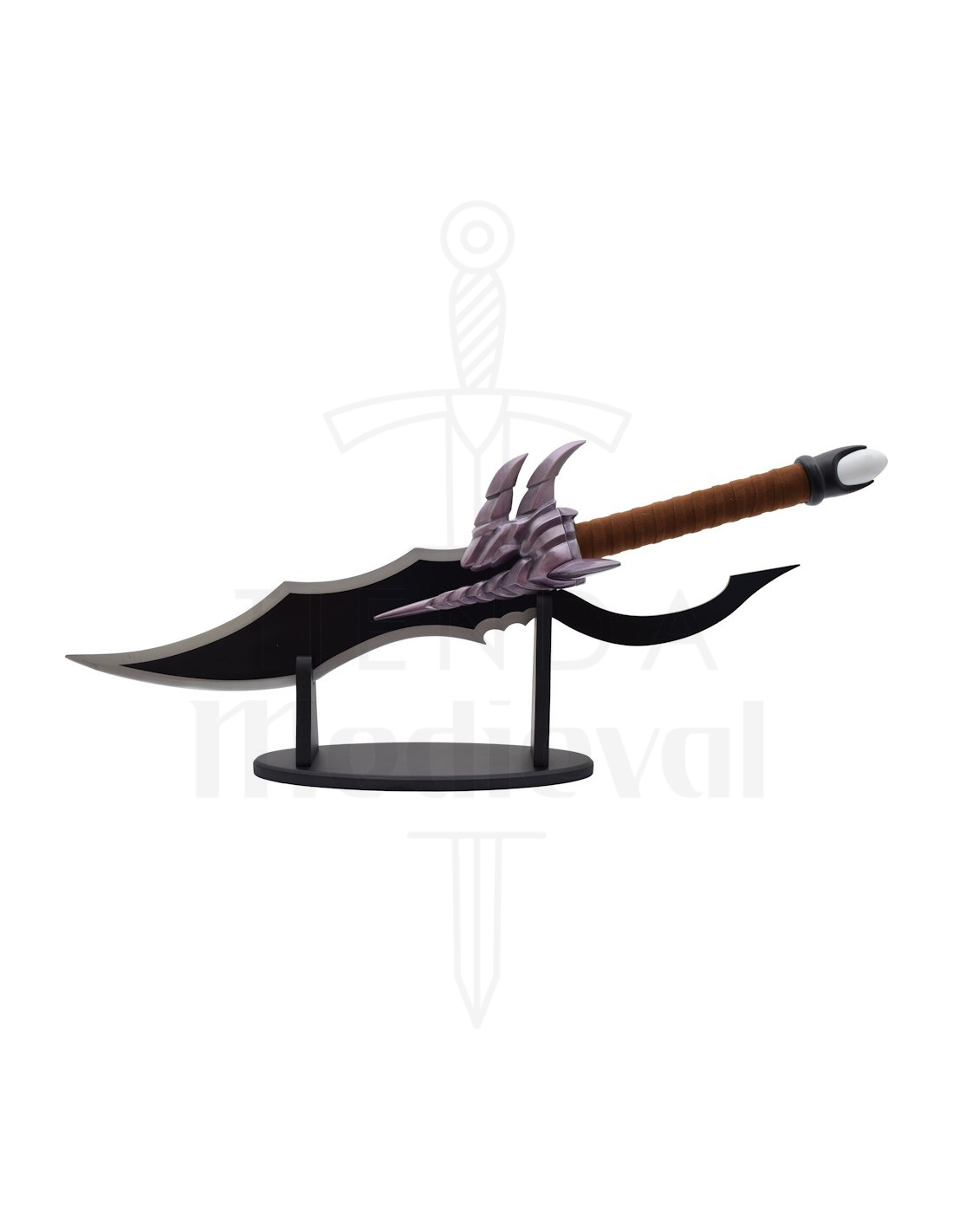 Med en aggressiv og slank silhuet, den sorte klinge med sølvskær og uregelmæssige konturer, tilføjer dynamik og karakter, ideel for dem, der søger et dekorelement, der taler for sig selv. Det tredimensionelle detaljer i metallisk lilla, som simulerer en klo, tilføjer dybde og en overraskende finish, der fremhæves i ethvert vitrineskab eller på væggen.