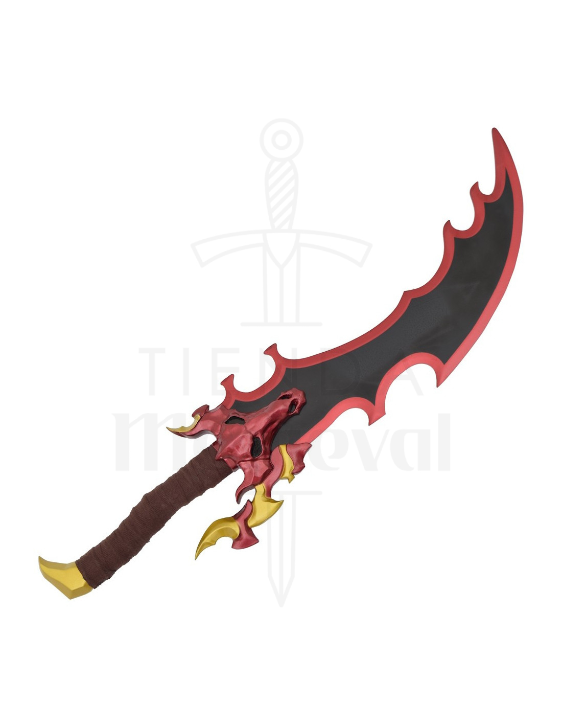 De uofficielle Demon King's Dagger knive fra Jinwoo - Solo Leveling står ud med deres visuelle appel: sorte grene med røde kanter, der fanger lyset og projicerer en skarp, bølgende silhuet fyldt med kurver og spidser, der synes at fortælle kamphistorier. Det uregelmæssige design tilføjer ikke blot dramatik, men også dybde og dynamik til dekorationen, hvilket gør stykke til centrum for alle blikke.