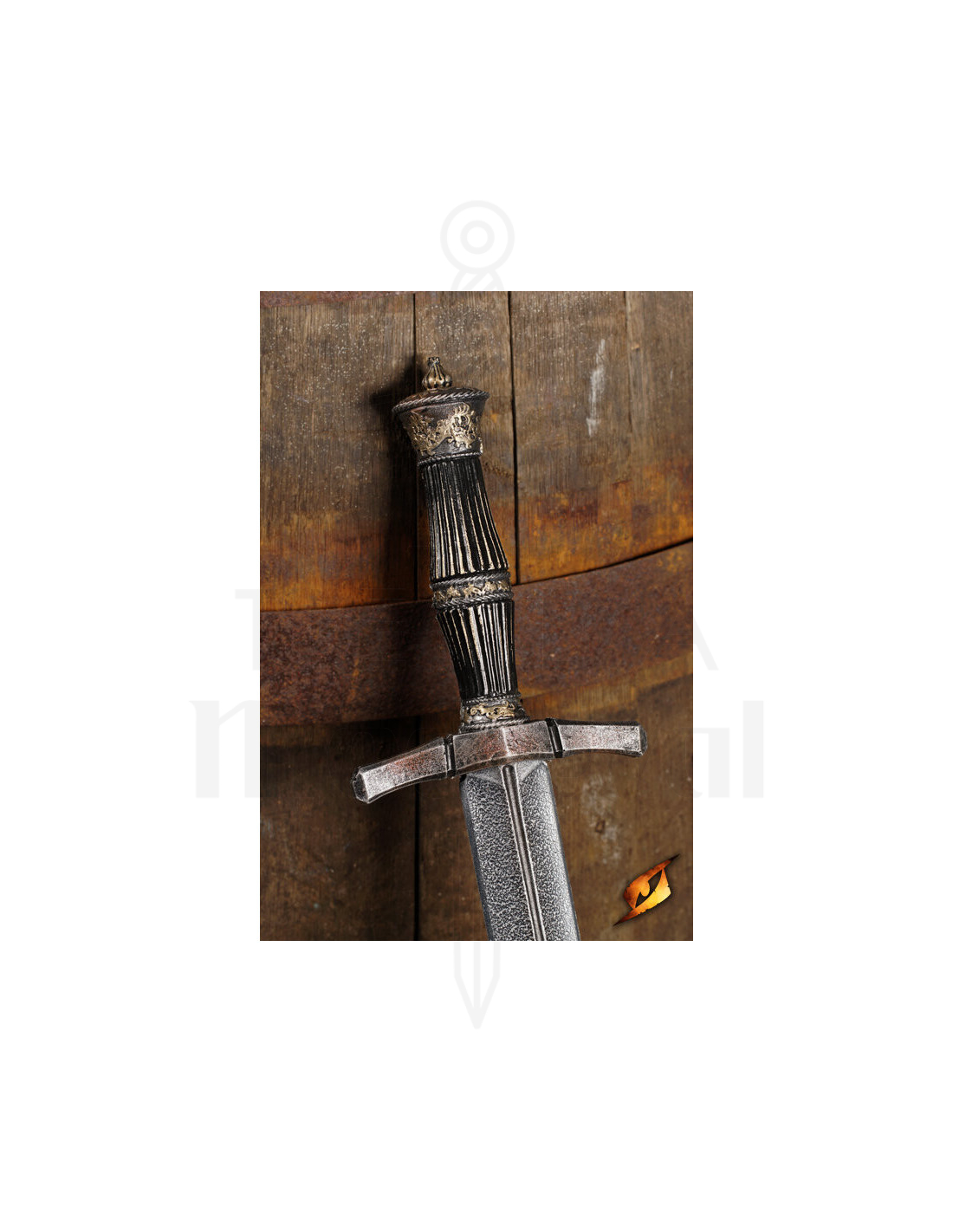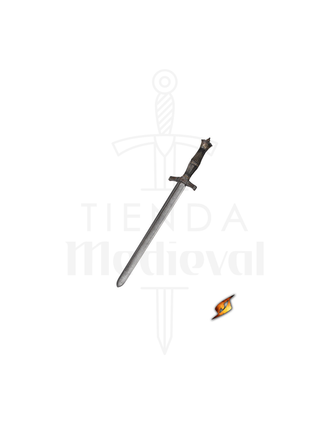 Det ekstra stive kerne giver dig større kontrol, så du kan blokere, afvise slag og nærme dig dine modstandere med selvtillid. Perfekt til tekniske eller defensive kampstilarter hjælper denne kniv dig med at bevare smidigheden i hver konfrontation. Det stålfarvede blad, sammen med det traditionelle kryds og den sorte finish på håndtaget, giver et robust udseende og skiller sig ud i enhver scene, fra fantasy til post-apokalypse.
