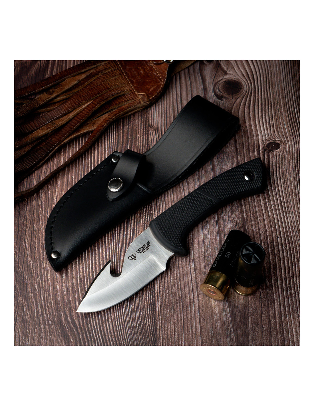 Denne flåkniv kommer også med en højkvalitets læderskede, der beskytter den og gør den nem at bære, hvilket gør den til et must-have for enhver jæger eller friluftsmand.