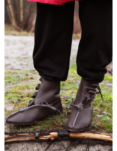 Oplev den autentiske vikingeessens med vores Buskins vikingestøvler i mørkebrune, direkte inspireret af de arkæologiske fund i Haithabu, det gamle Hedeby. Fordyb dig i vikingernes guldalder, fra det 9. til det 11. århundrede, hvor Haithabu var et travlt handelscentrum.