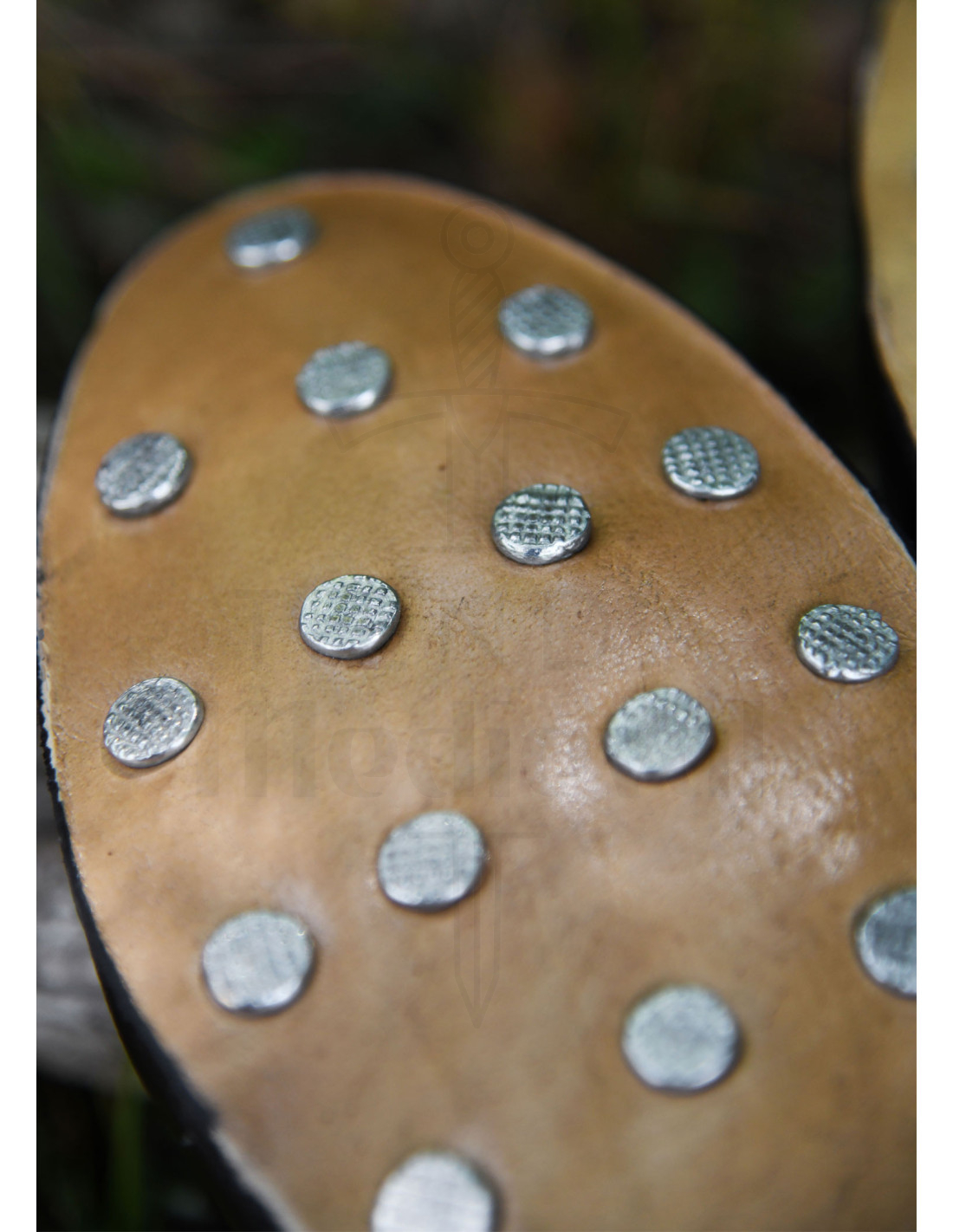Dette design er inspireret af populært fodtøj fra det europæiske middelalder, en fascinerende periode, der markerede store sociale og kulturelle forandringer. Perfekte til historieentusiaster, reenactors og dem, der søger fodtøj med karakter og personlighed, tilbyder disse sko den ideelle balance mellem autenticitet og funktionalitet.