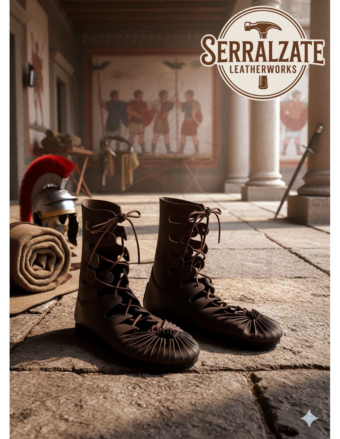 De cáligas (fra latin caligæ) var den officielle fodtøj for romerske legionærer og auxiliaretropper. Nu kan du eje dit eget par, fremstillet med passion og omhu af spanske håndværkere. Et fodtøj, der hylder styrken og modstanden hos dem, der byggede et af de største imperier i historien.