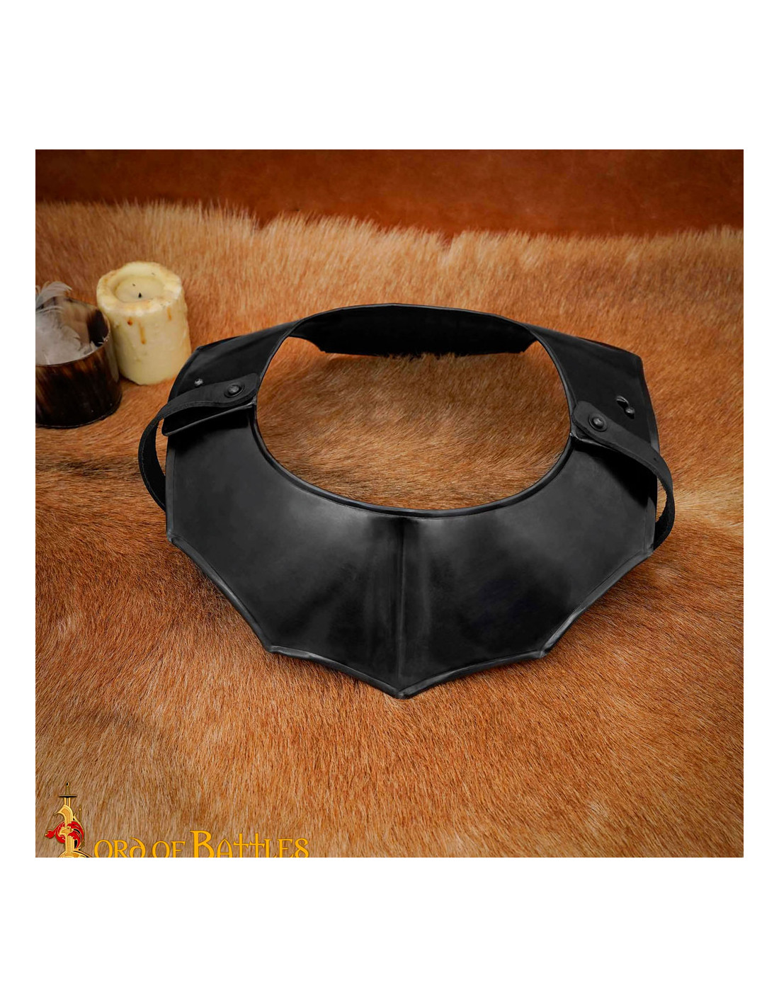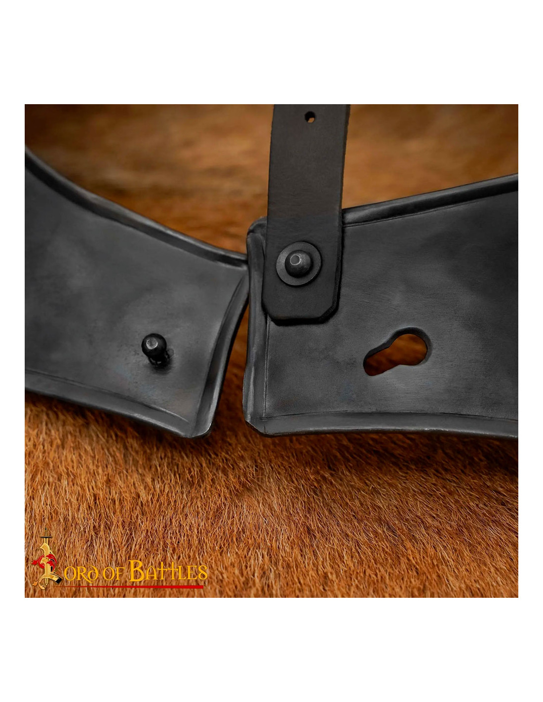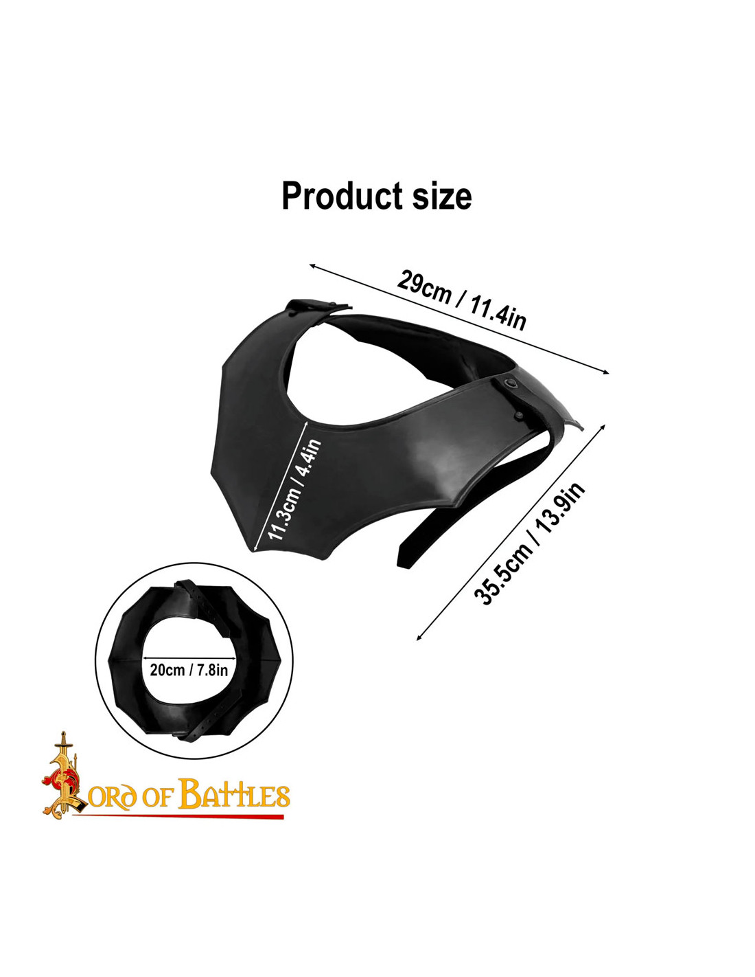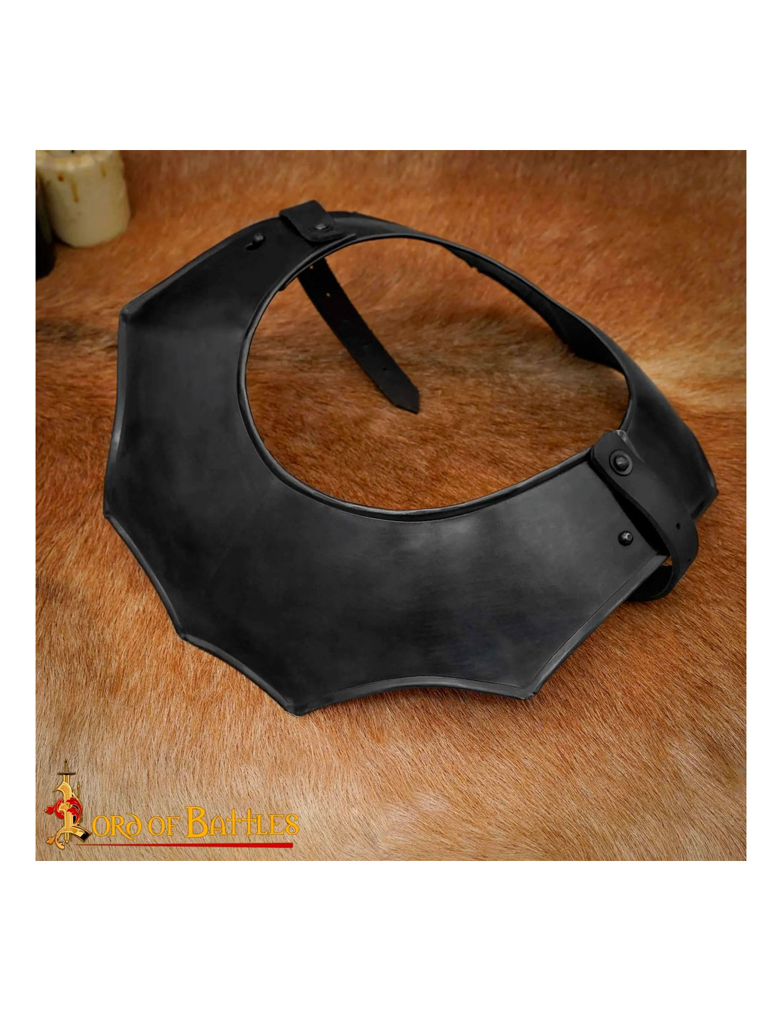 Skil dig ud fra mængden med Blackened Finish Simple Medieval Gorget. Dette imponerende tilbehør er dygtigt håndlavet af stærkt 18 gauge blødt stål, hvilket gør det til den perfekte ledsager til dine LARP- og reenactment-outfits.
