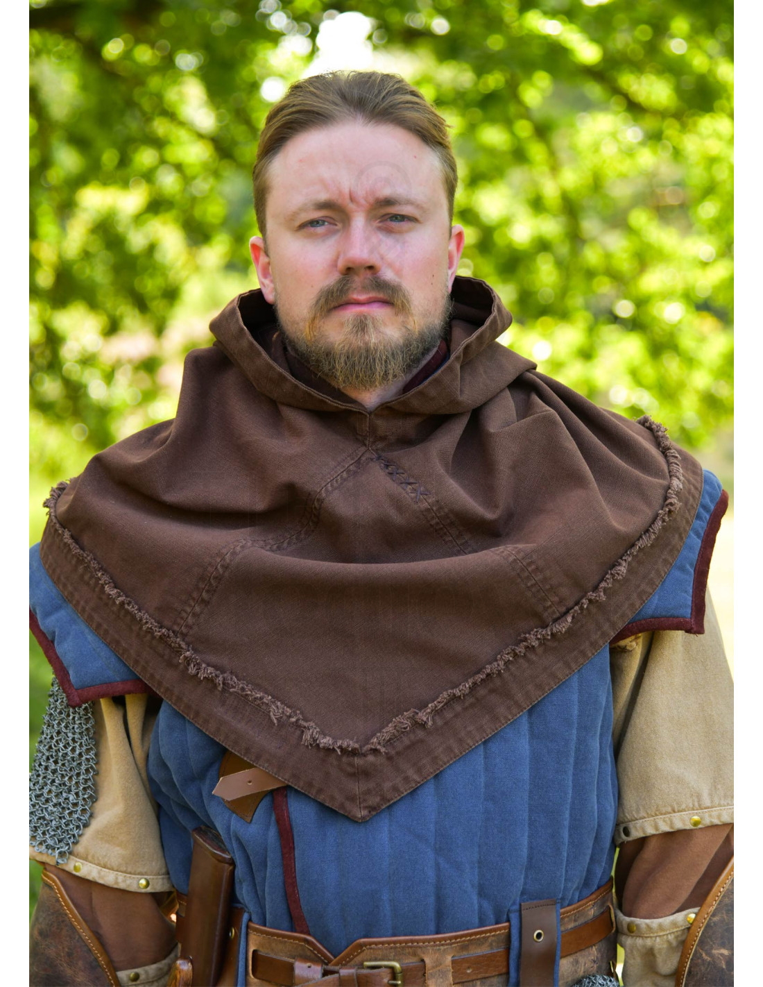 Opdag essensen af historien med denne imponerende middelaldergugel i bomuld, inspireret af norske arkæologiske fund fra det 10. til 12. århundrede. Perfekt til at genskabe mystiske figurer, snedige rejsende eller tidsperiodens krigere, giver dens mørkebrune farve et autentisk og holdbart udseende.