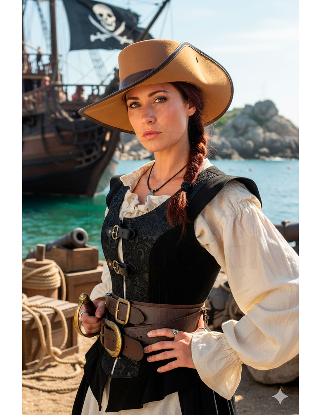 Gå ikke glip af chancen for at skille dig ud til dine arrangementer og særlige lejligheder med den perfekte hat. Køb vores bredskæg Corsair-hat nu, og træd ind i den fascinerende verden af 1500- og 1600-tallets korsarer. Du vil ikke fortryde det!