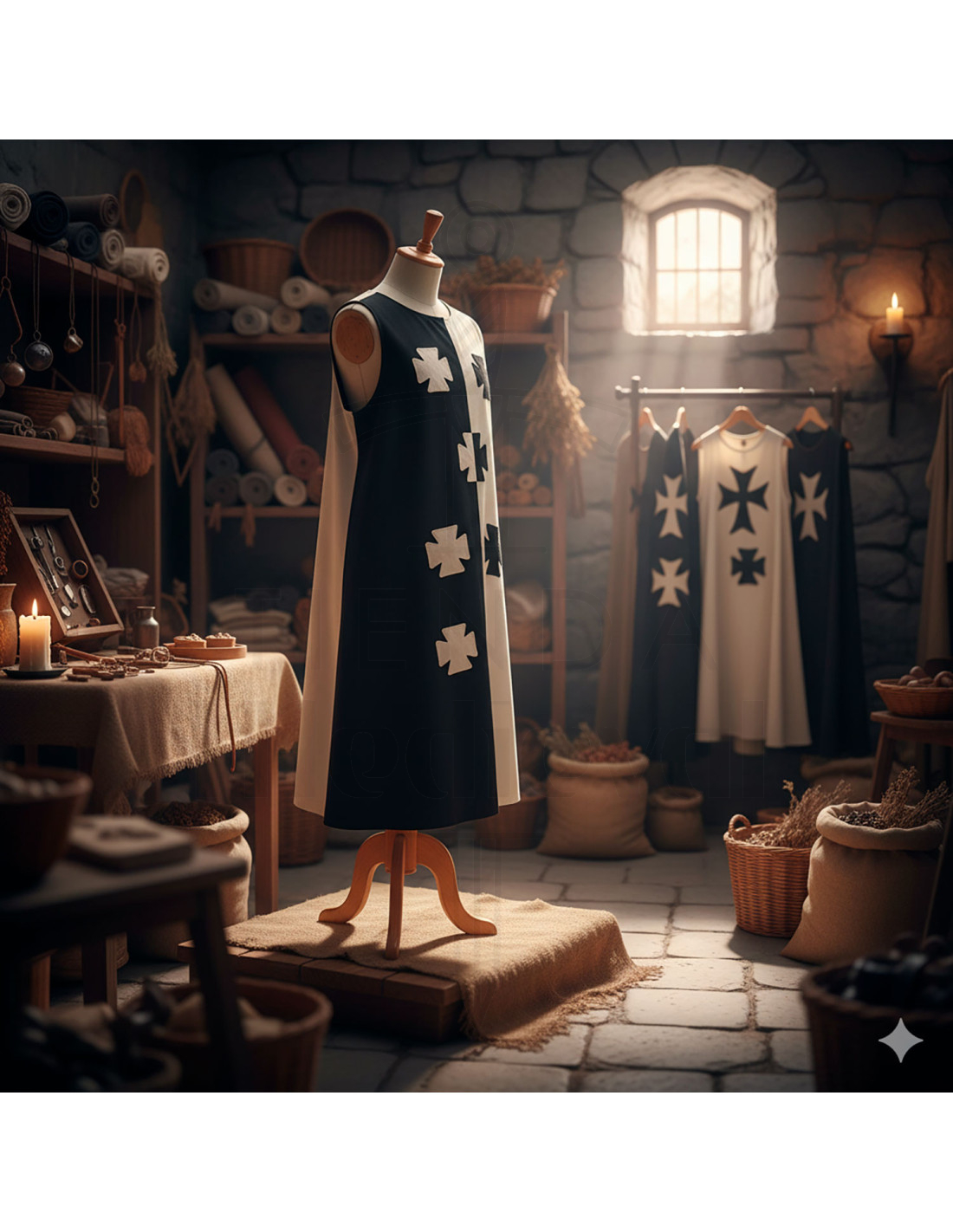 For de korsfarere, der ikke tilhørte specifikke militære ordener, såsom tempelriddere eller hospitalsmænd, ville denne tunika have tjent dem perfekt som en karakteristisk og kvalitetsbeklædning. Dens tofarvede design viser den kampånd og det mod, der karakteriserede datidens krigere.