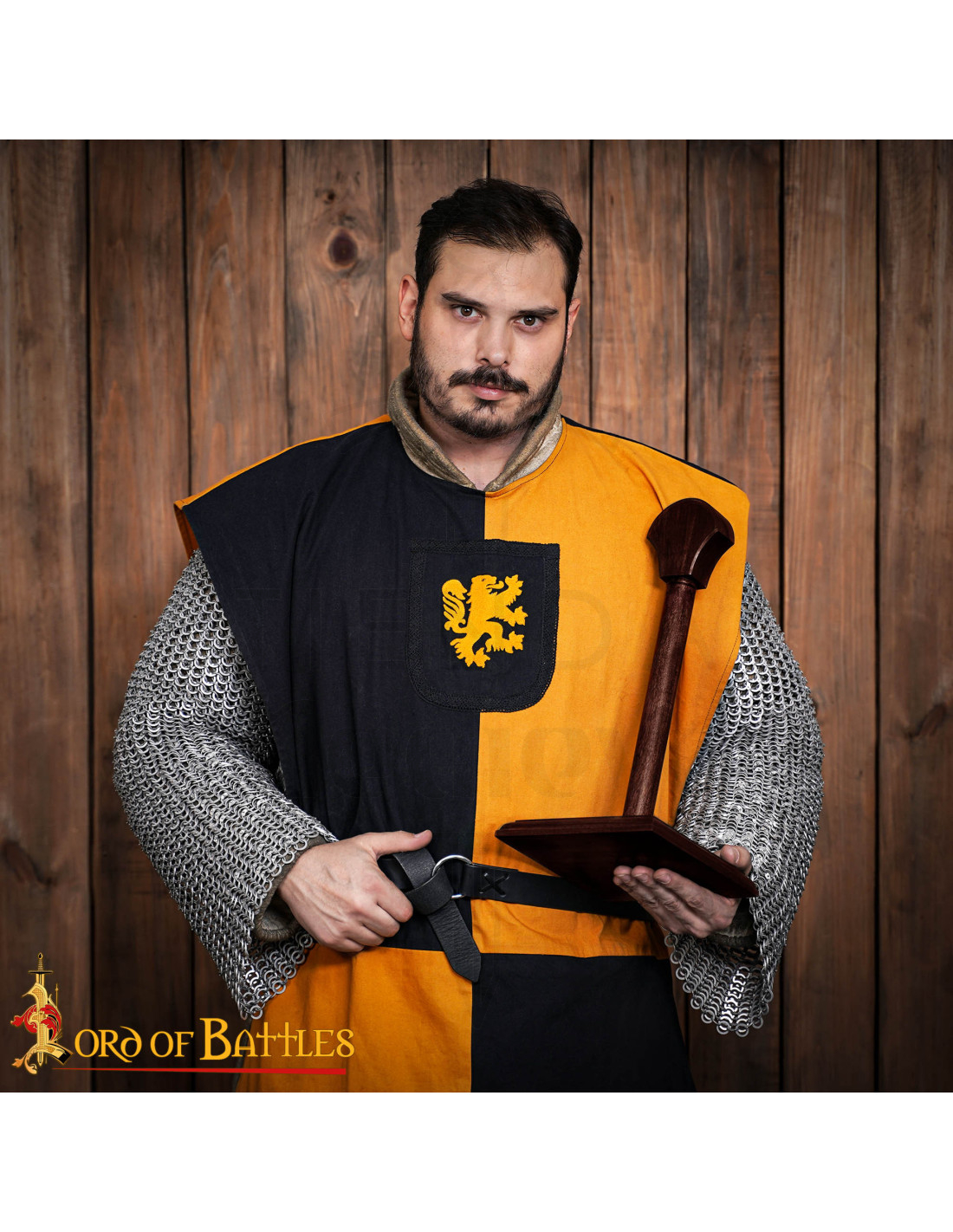 Hvert eksemplar er håndlavet, derfor er hver årgang og nuancen af den mørke farve unik og tilføjer karakter til helheden, hvilket gør støtten til et eksklusivt stykke i vikingesamlinger, middelalderlige eller inspirerede i fantasiverdener. Den brede base med skrånende kanter sikrer stabilitet, mens den cylindriske stang og det buede top holder hjelmen naturligt og æstetisk.