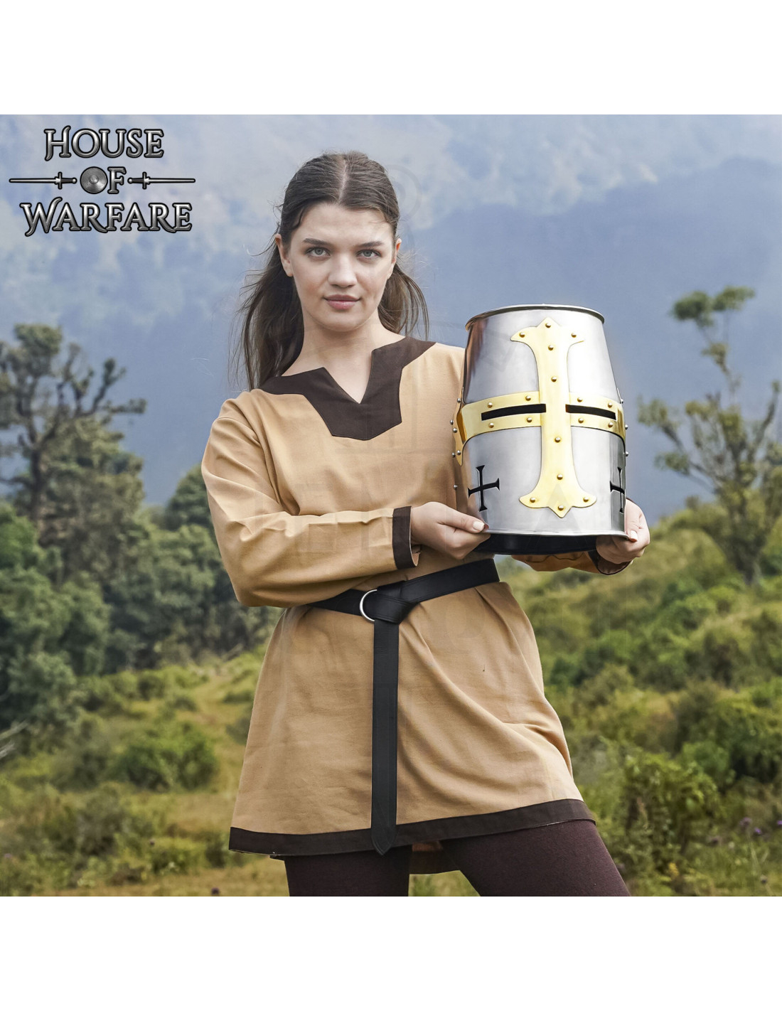 Dets cylindriske form med afrundet kant sikrer et autentisk og funktionelt udseende, mens dekorative elementer og symboler i bunden fremkalder æstetikken fra perioden og tempelriddernes adel. Tilstedeværelsen af mærket 'HOUSE OF WARFARE' sikrer et kvalitetsstykke med historisk troværdighed.