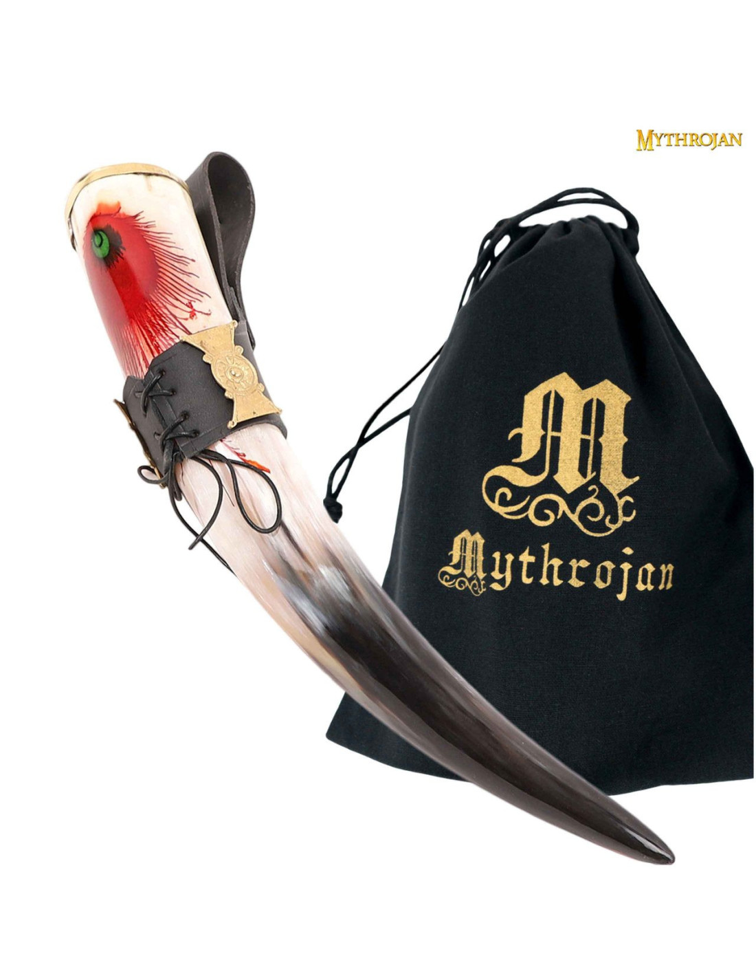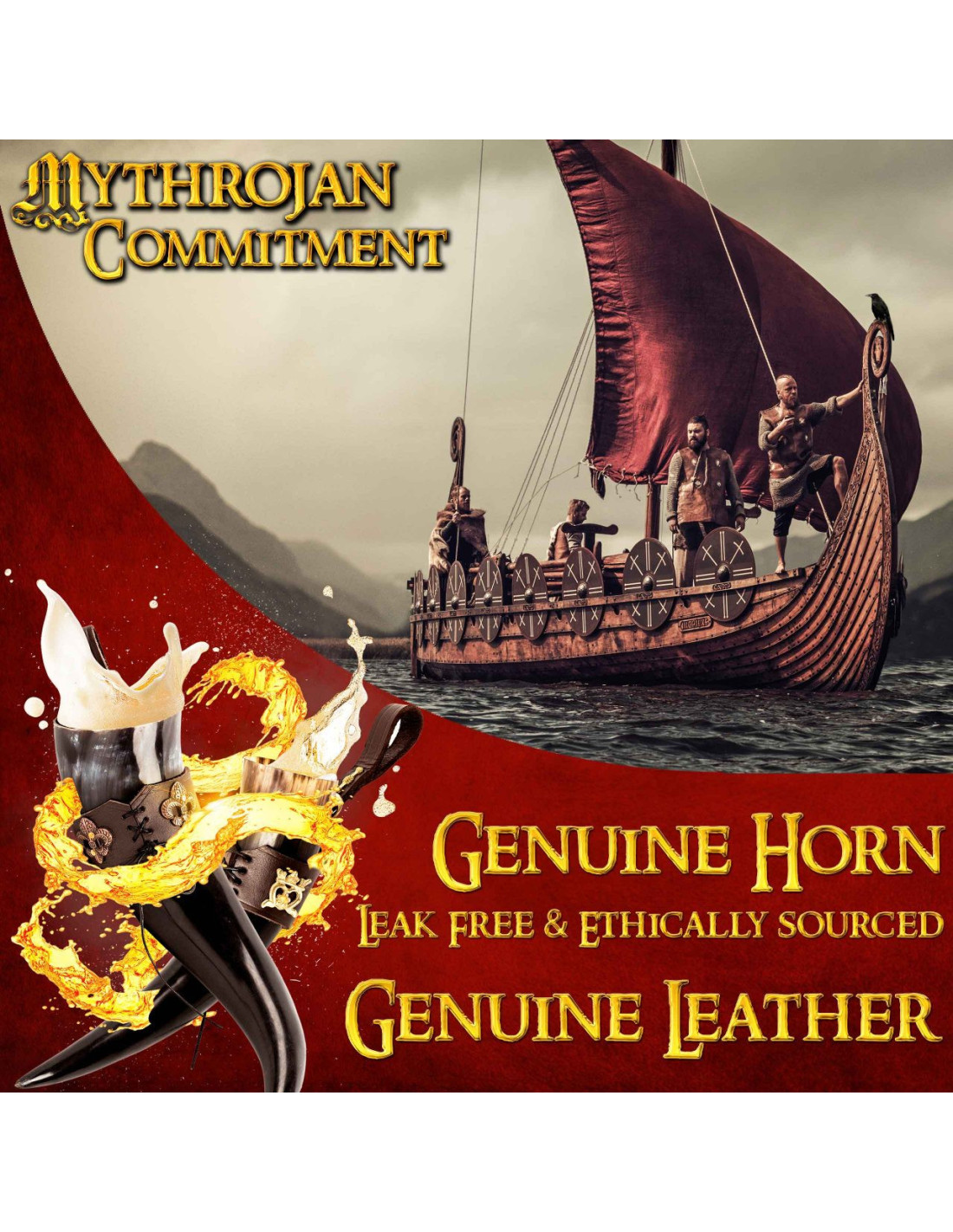 Vores drikkehorn er håndlavet af etisk fremstillet ægte horn og er 100% lækagefrit. Ydermere kommer den med en holder i ægte læder, der giver dig mulighed for komfortabelt at bære den med dig, uanset hvor du går. Vi inkluderer også en gratis Mythrojan beskyttelsestaske, så du kan transportere den sikkert.