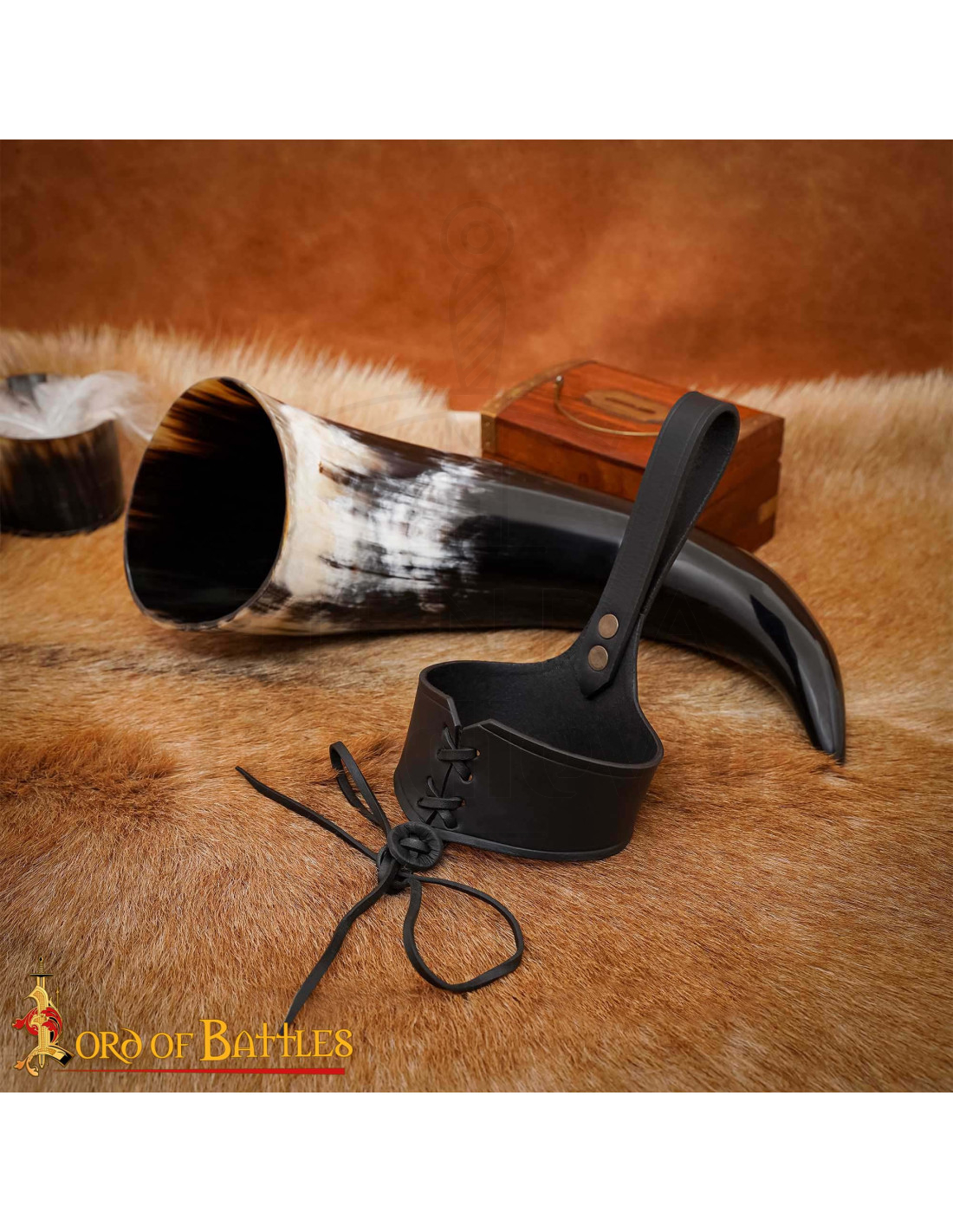 Fejr dine sejre vikingestil med vores drikkehorn ledsaget af en sort læderbaldric! Dette autentiske oksehorn, omhyggeligt håndlavet, er den perfekte ledsager til at nyde mjød eller din yndlingsdrink, der indeholder op til 20 % alkohol, i dens generøse 250 ml størrelse.