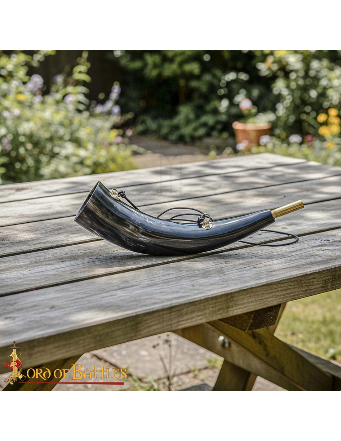 Men den sande kraft ligger i funktionaliteten. Takket være dens integrerede messingmundstykke, forvandles din ånde til en resonant og vidtrækkende kald, der kan høres på lange afstande. Det er lyden, der engang kunne have kaldt krigere til skjoldmuren eller annonceret starten på et stort festmåltid i mjødhallen. Det er et horn, der udstråler en ægte historisk tilstedeværelse, uundgåelig for enhver rekonstruktion eller ritual.