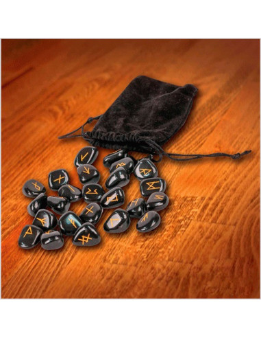 Vores Viking Runes Set er lavet af obsidian sten, en meget poleret mørk intensitet glasagtig vulkansk sten, som giver den en aura af mystik og elegance. Hver sten er omhyggeligt udskåret og malet med den tilsvarende rune, hvilket gør dem til ægte esoteriske kunstværker.