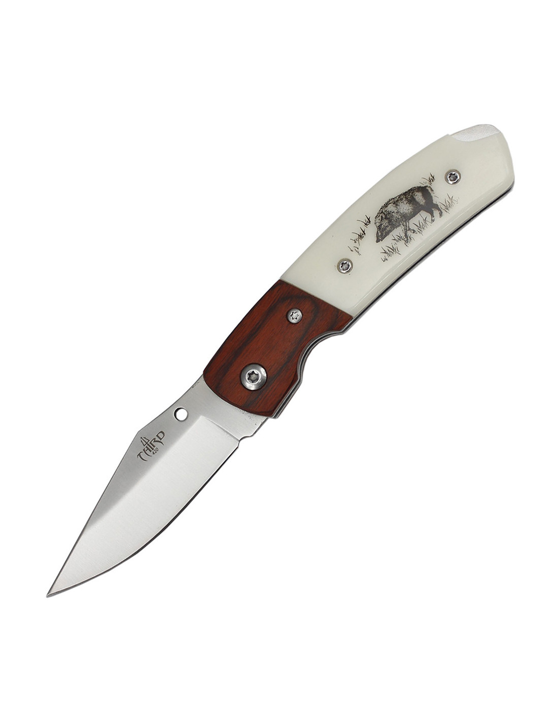 - Træ- og ABS-håndtag med ornedekoration: Træ- og ABS-håndtaget kombinerer holdbarhed med et strejf af elegance. Vildsvinedekorationen på håndtaget tilføjer en markant og rustik karakter, perfekt til natur- og jagtelskere.