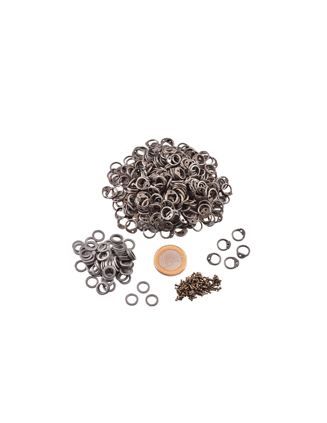 Leder du efter kvalitetsmateriale til at lave eller reparere din egen ringbrynje? Vi har den perfekte løsning til dig! Vi præsenterer en pose på 1 kg med ringbrynjeringe med kanter, et essentielt produkt for elskere af historie, fantasy og rollespil.