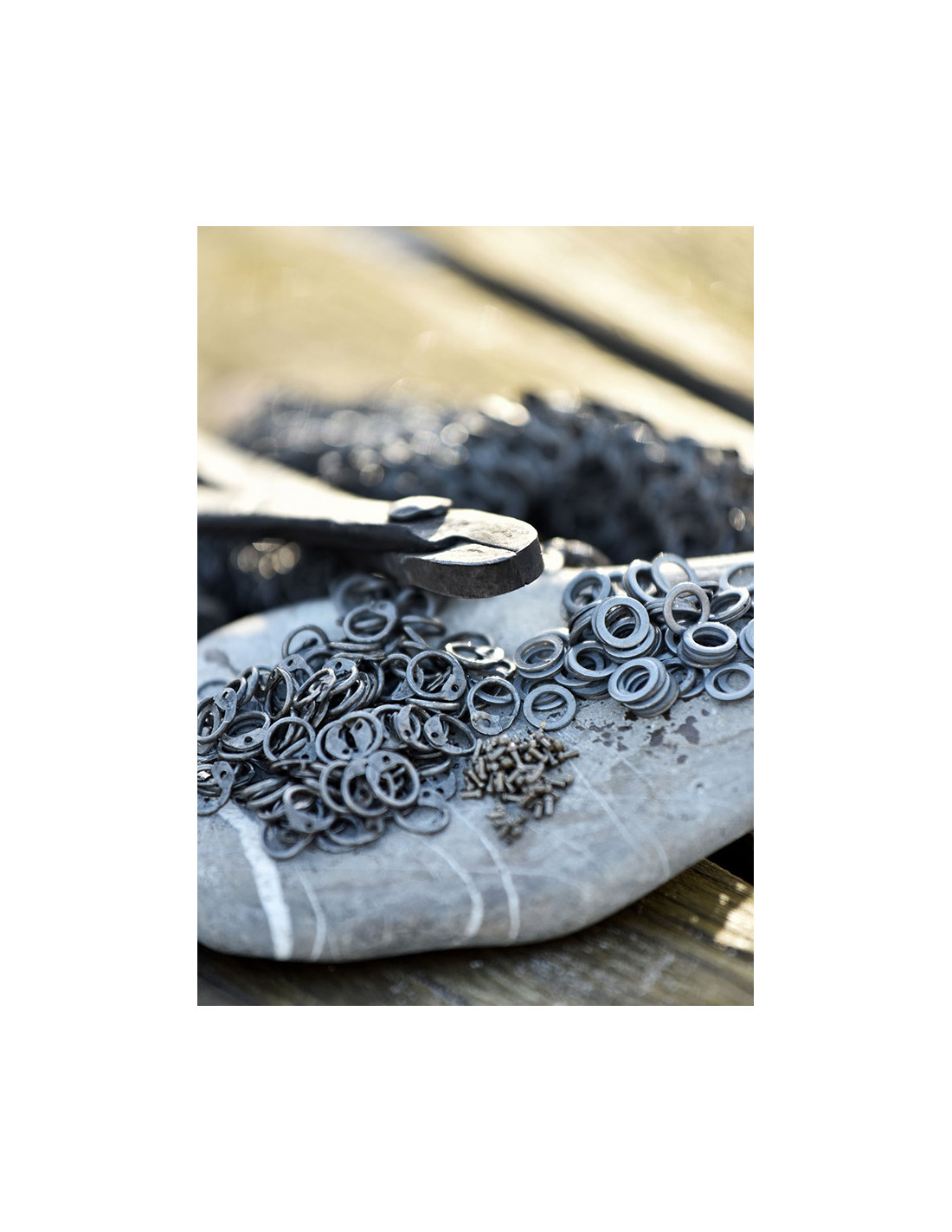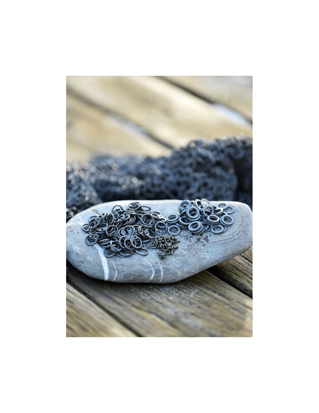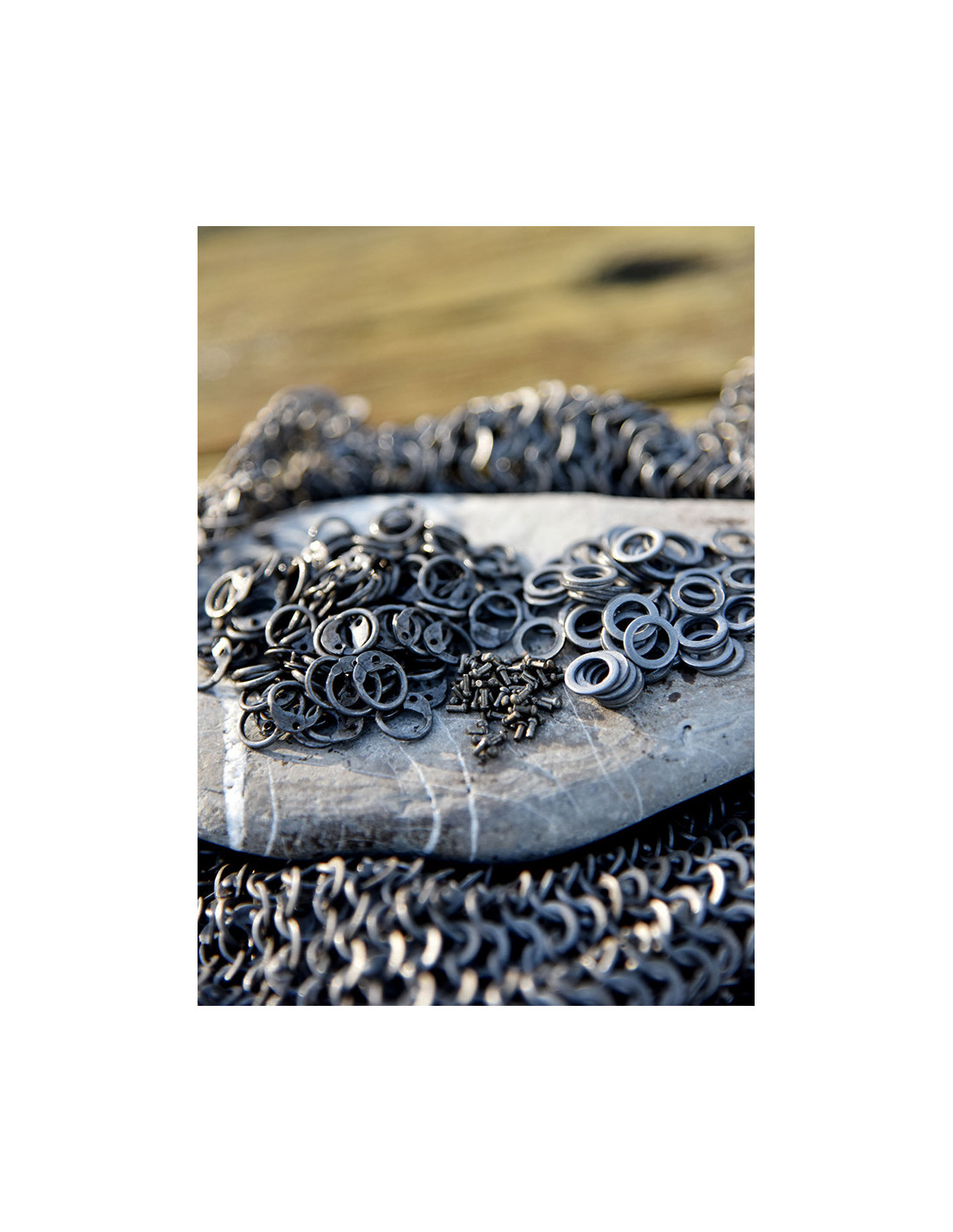 Denne taske indeholder ringe med en naturlig finish, lavet af den anerkendte tyske producent Ulfberth. Med en tykkelse på 1,1 mm og en vægt på 1 kg er disse ringe ideelle til at bygge stærk, modstandsdygtig og autentisk ringbrynje.