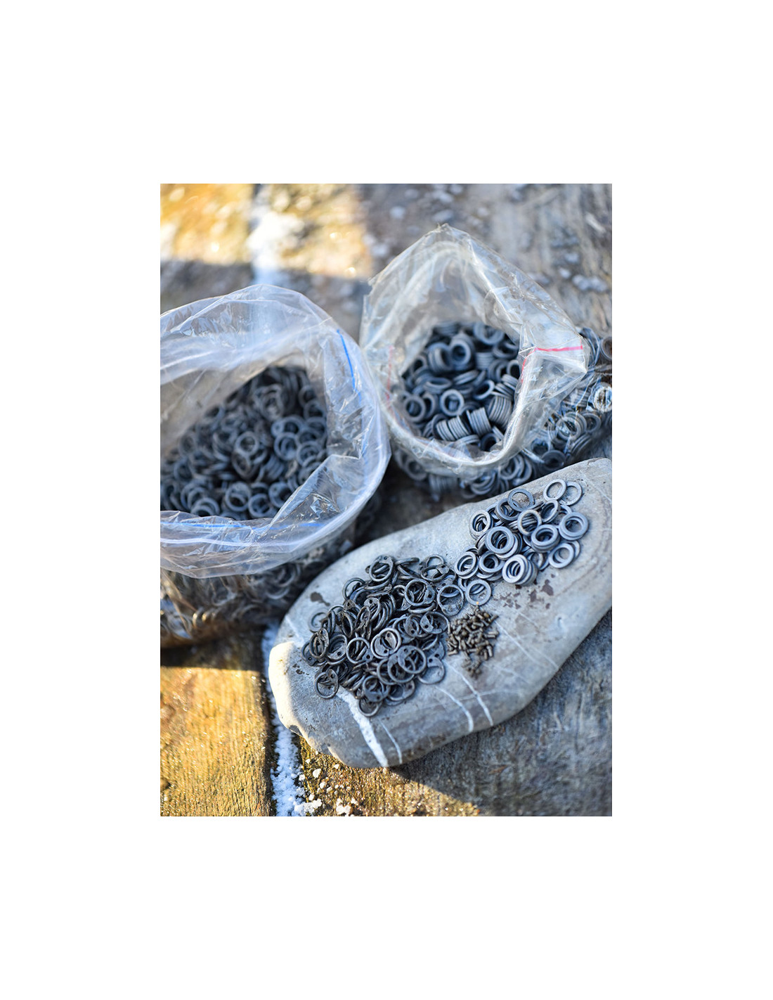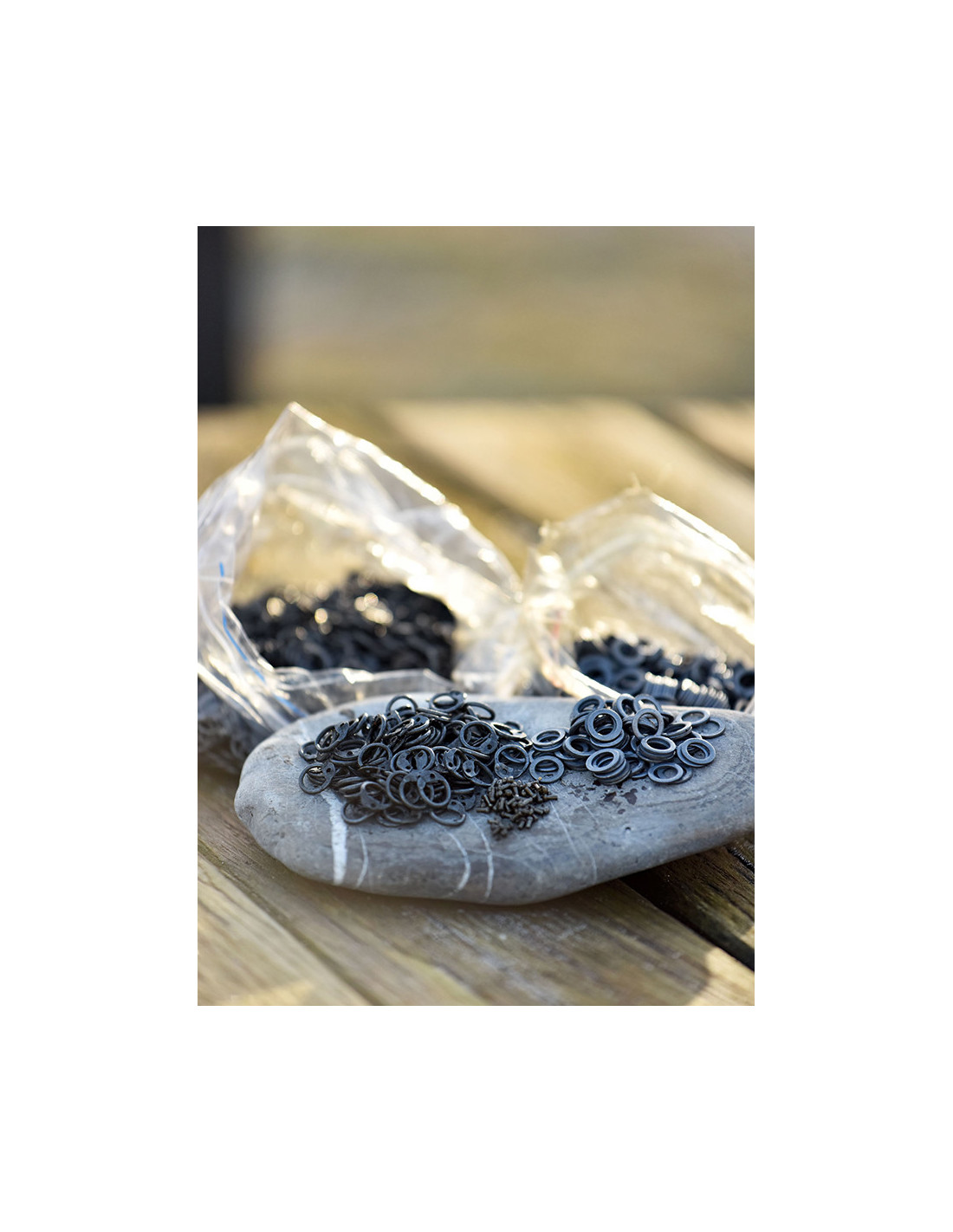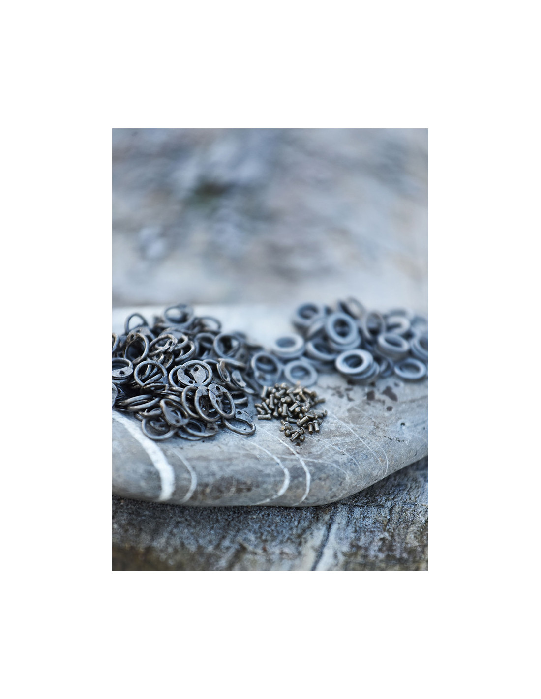 Denne taske indeholder ringe med en naturlig finish, lavet af den anerkendte tyske producent Ulfberth. Med en tykkelse på 1,1 mm og en vægt på 1 kg er disse ringe ideelle til at bygge stærk, modstandsdygtig og autentisk ringbrynje.