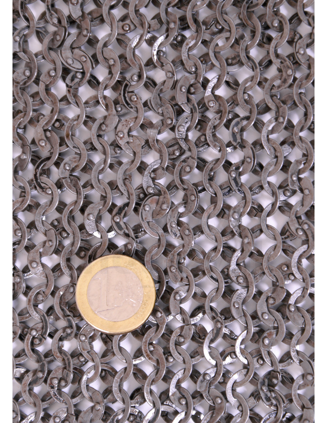 Det eksklusive europæiske stof, bestående udelukkende af flade ringe med fast påsatte nagler, sikrer en solid og holdbar struktur. Denne teknik giver en forstærket beskyttelse, der forhindrer, at skarpe genstande let trænger igennem, samtidig med at sammensætningen tillader den nødvendige fleksibilitet, så du kan bevæge dig frit.