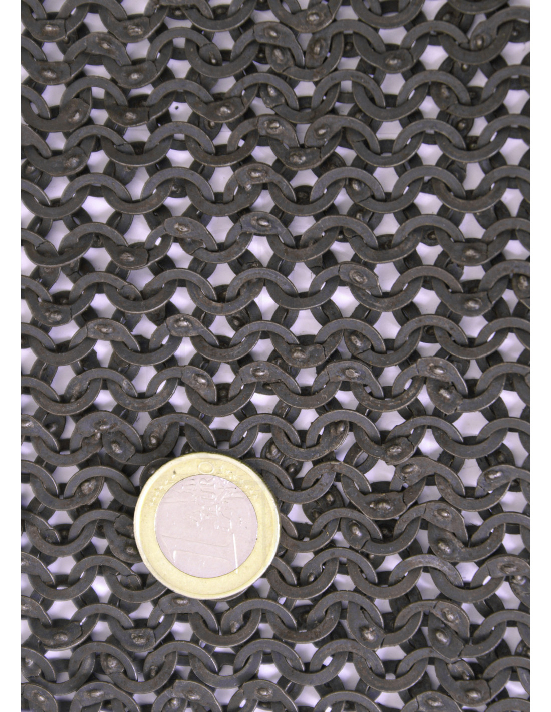 Takket være dets struktur med flade metalringe, hver perfekt forstærket med nitter for at sikre holdbarhed, giver det dig en modstandsdygtig forsvar mod slid og stød, ideelt til middelalderlige reenactments eller simulerede kampbegivenheder, hvor funktionalitet er nøglen. Dets design inkluderer en ujævn kant, der ikke kun tilføjer et visuelt karakteristisk præg, men også muliggør en bedre pasform og større bevægelsesfrihed, så rustningen ikke føles stiv eller generende.